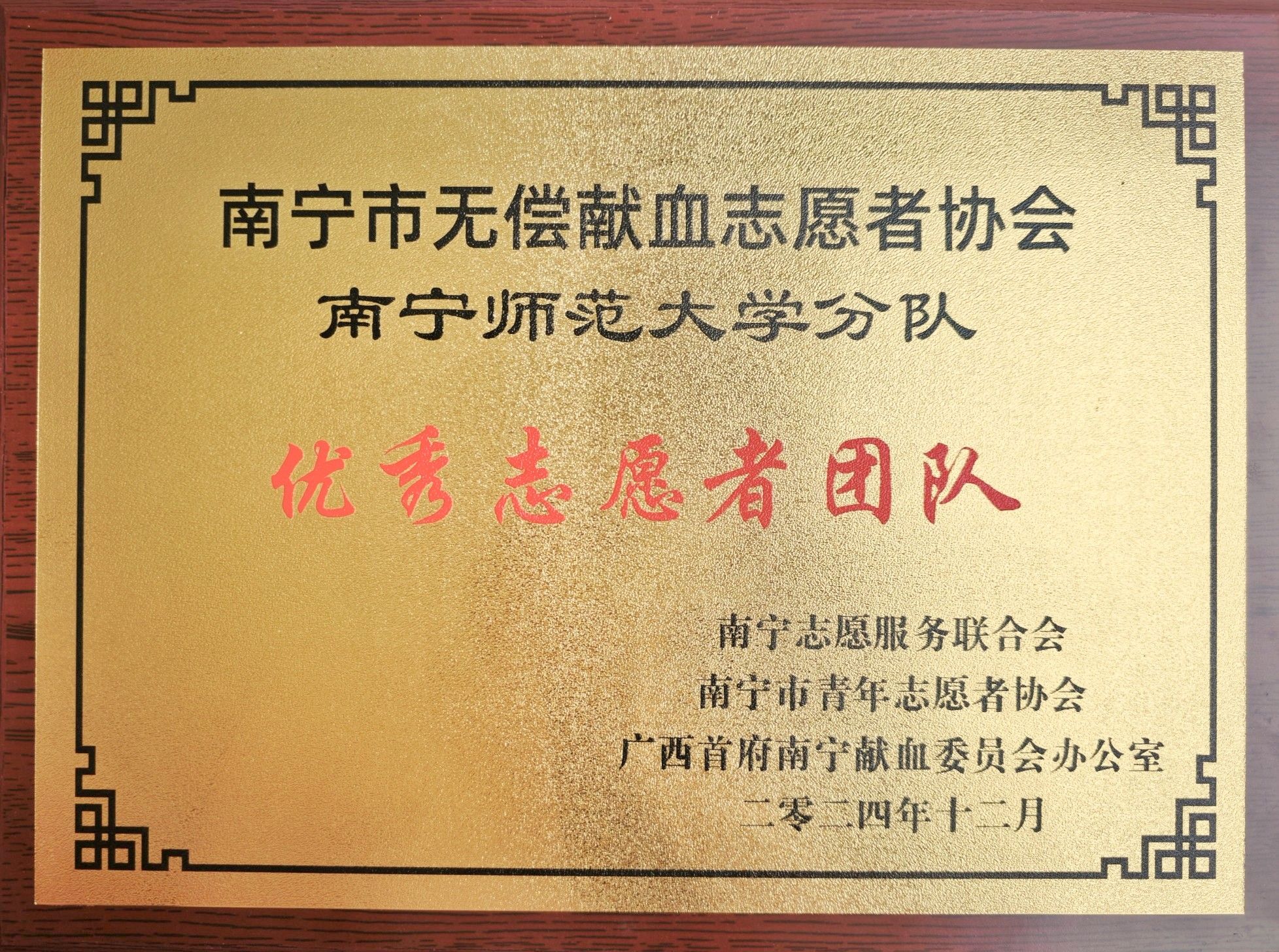 根据《关于表扬2024年南宁市无偿献血志愿服务获奖团队和个人的通报》表彰,beat365官网爱心社无偿献血志愿服务团队荣获了“南宁市优秀志愿服务团队”称号;3名同学荣获“优秀负责人”称号,5名同学荣获一星级志愿者称号;beat365官网荣获南宁市无偿献血促进奖。这不仅是对beat365官网2024年无偿献血事业的肯定,也是对beat365官网在志愿服务工作方面的认可,进一步展示了beat365官网学子对无偿献血工作的热情与担当。