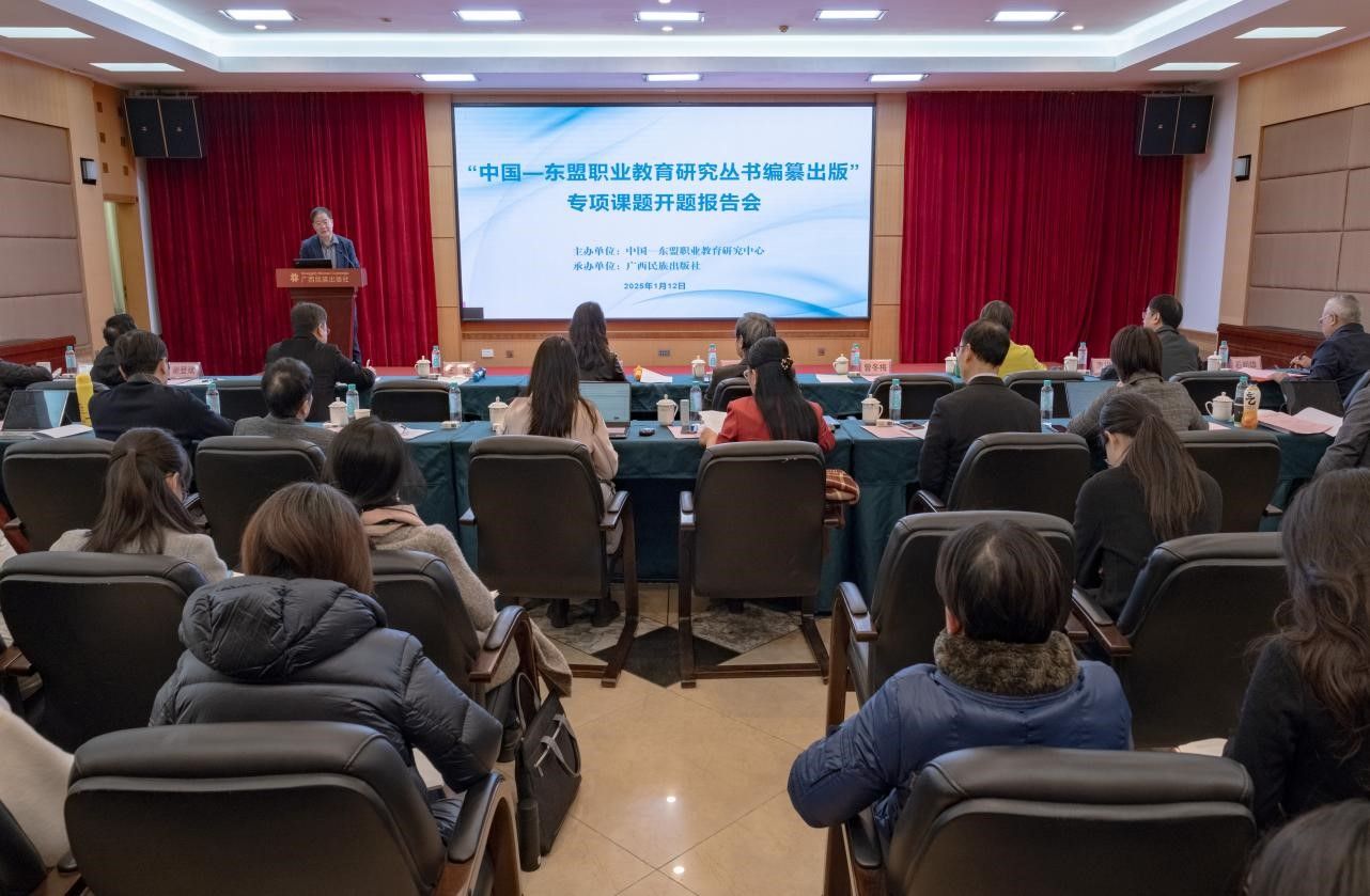 1月12日,由中国—东盟职业教育研究中心主办,广西民族出版社承办的“中国—东盟职业教育研究丛书编纂出版”专项课题开题报告会在南宁召开。多位职教领域的专家学者齐聚一堂,共同为项目开题把脉问诊,为丛书编纂出谋划策。beat365官网校长、中国—东盟职业教育研究中心理事长李传起,广西民族出版社社长石朝雄出席会议并致辞。会议由中国—东盟职业教育研究中心常务副主任王屹主持。
