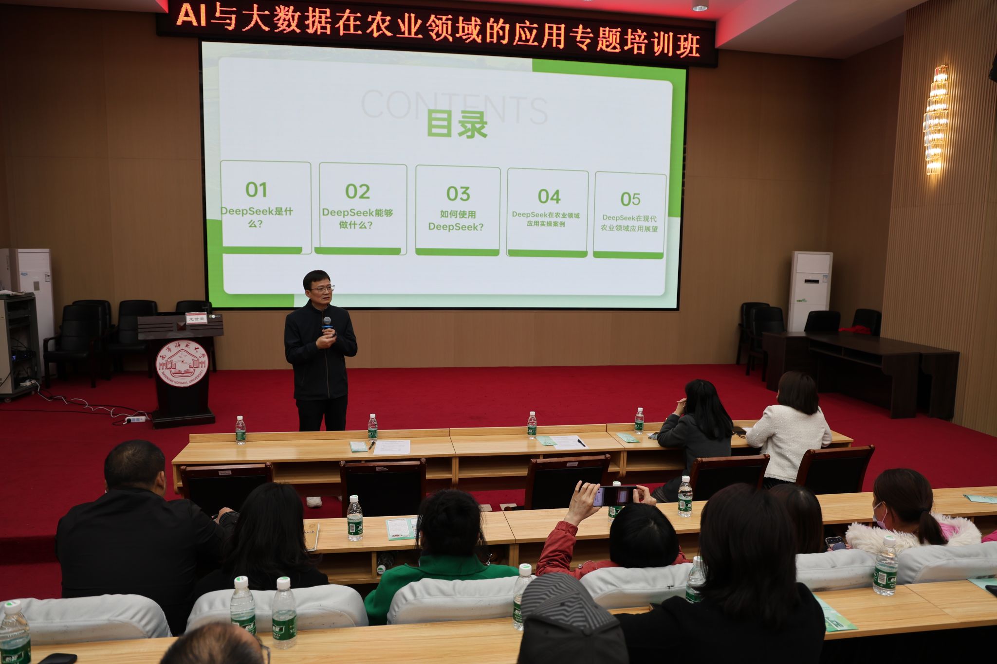 培训班上,学校地理与海洋研究院黄玉清研究员为学员们讲授了“AI与大数据在农业领域的应用”专题课程。她系统剖析了AI与大数据技术在农业生产、管理、决策等全链条中的应用场景与实践路径。学校网络信息中心龙世荣教授带来了DeepSeek技术在农业领域应用的分享,详细介绍了DeepSeek技术特点以及其在农业领域的实操技能,为学员们提供了丰富的学习资源和实践经验。