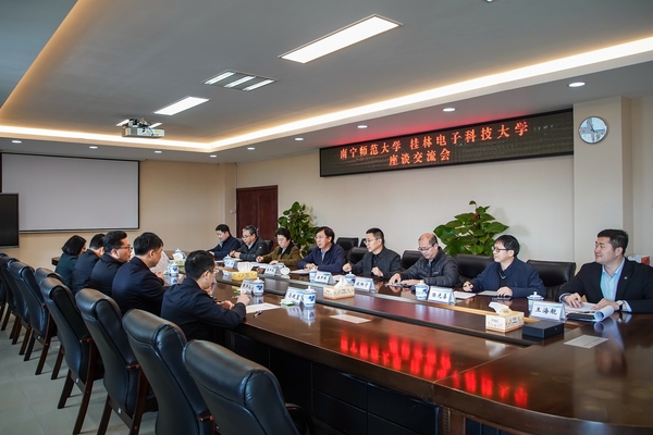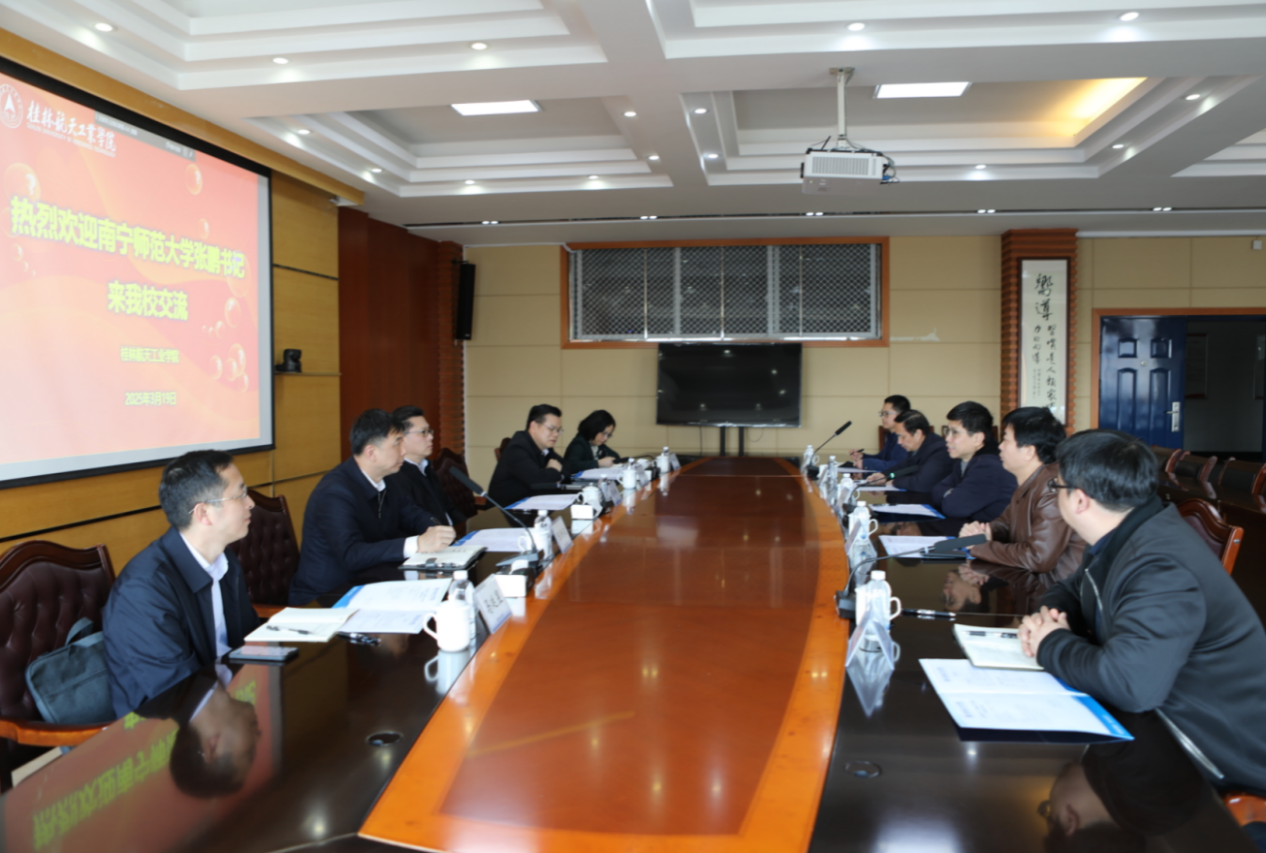 3月20日,广西科技大学党委书记赵君、副校长邓朗妮热情接待了张鹏一行。双方在文昌校区办公楼5—1会议室座谈交流。该校有关部门负责人分别围绕人才强校、科研工作、实验室实训基地建设等作了专题汇报。beat365官网有关部门负责人就校地企合作、机构改革、人事管理、实验室管理等方面工作向对方请教。会前,张鹏一行实地参观学校规划馆、文昌校区和柳东校区相关实验室。