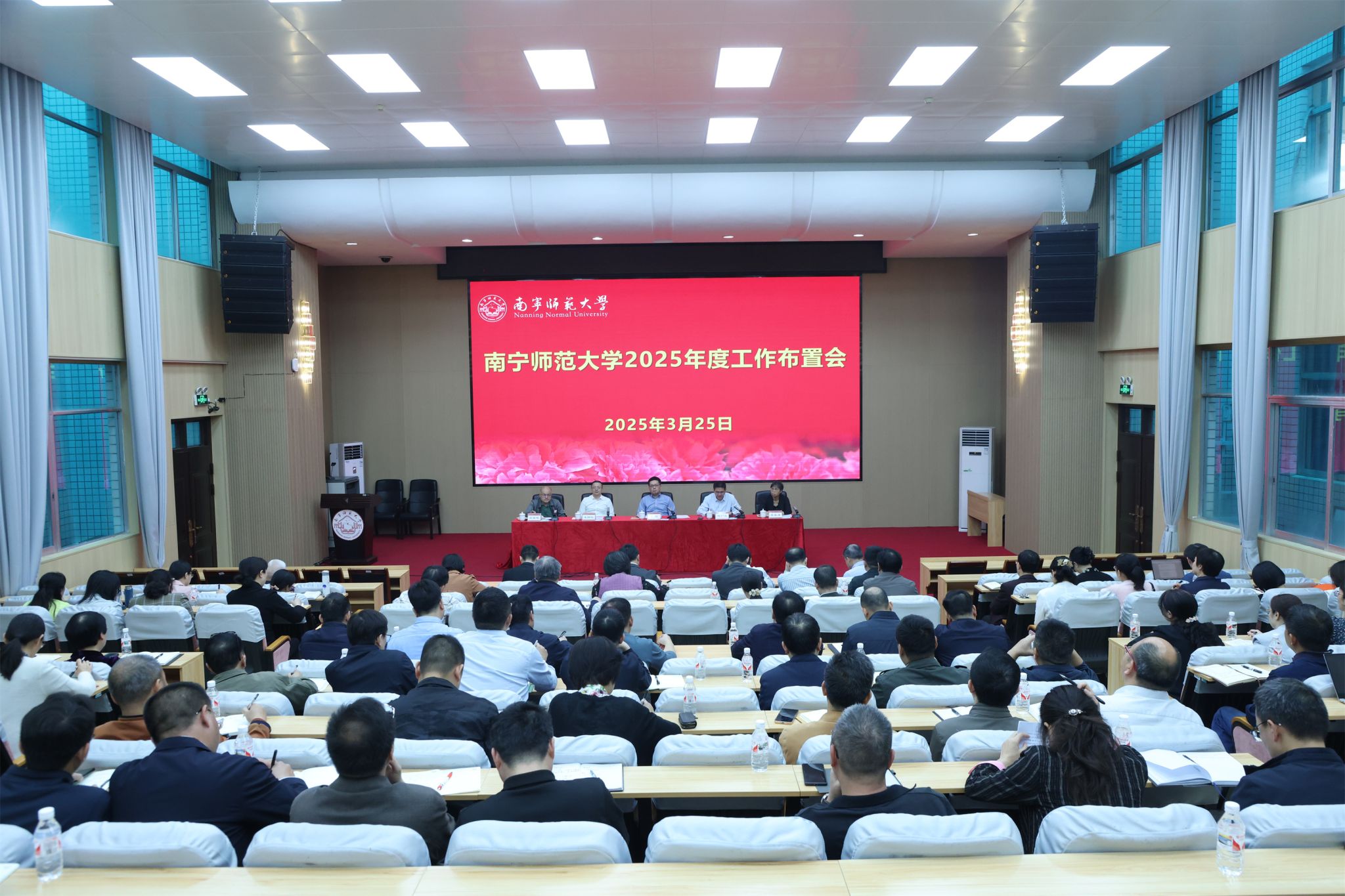 3月25日上午,beat365官网在文星楼301报告厅召开2025年度工作布置会。会议总结了过去一年学校行政工作,安排部署2025年学校行政工作。学校校长隆广庆出席会议并作讲话,学校党委书记张鹏主持会议,副校长王国红、纪委书记李美清、总会计师梁家斌出席会议。
