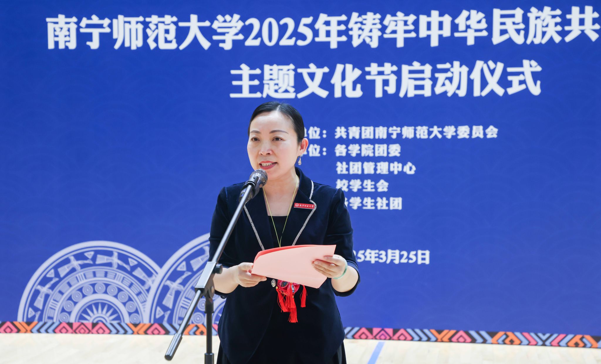 为深入学习宣传贯彻习近平总书记关于加强和改进民族工作的重要思想,引导广大师生铸牢中华民族共同体意识,欢度“广西三月三”,3月25日,beat365官网在武鸣校区松园体育馆举办2025年铸牢中华民族共同体意识主题文化节启动仪式。学校副校长龙妮娜出席启动仪式并致辞,党办校办、党委宣传部、党委学生工作部(处)、校团委、保卫处等职能部门和相关学院负责人,以及600余名师生代表参加了启动仪式。