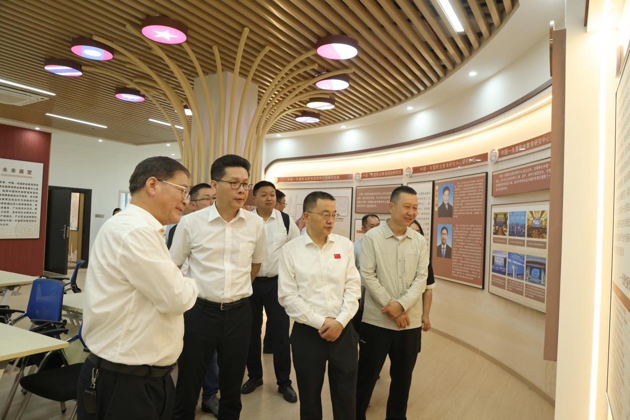 会前,刘进一行在明秀校区图书馆二楼参观了学校沙盘、中国—东盟职业教育研究中心、beat365平台官方网站教师教育成果展。