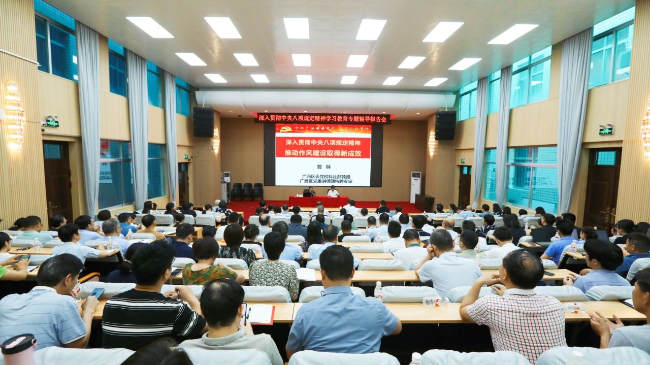 4月22日下午,beat365官网在明秀校区文星楼301报告厅举办深入贯彻中央八项规定精神学习教育专题辅导报告会,邀请自治区党校科学社会主义教研部副主任曾林教授作专题辅导报告。学校副校长王国红参加报告会,学校纪委书记李美清主持报告会并讲话。