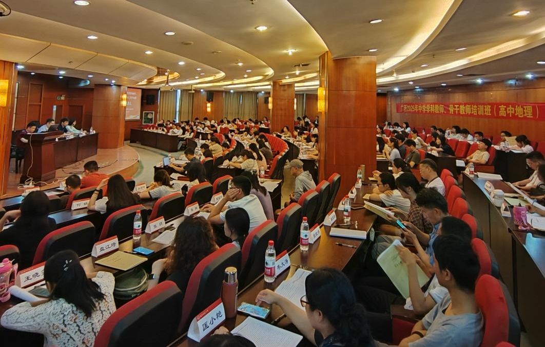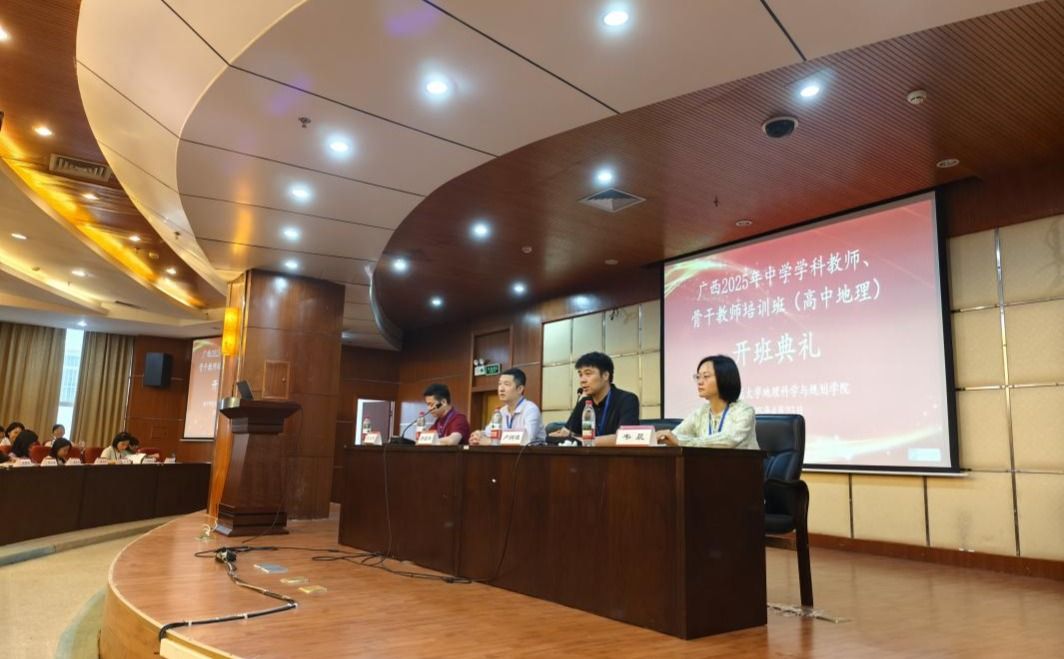 4月23日,由beat365官网承办的广西2025年中学学科教师、骨干教师培训班(高中地理)在明秀校区图书馆三楼报告厅顺利开班,来自广西全区各市的146名高中地理学科教师、骨干教师参加开班仪式。