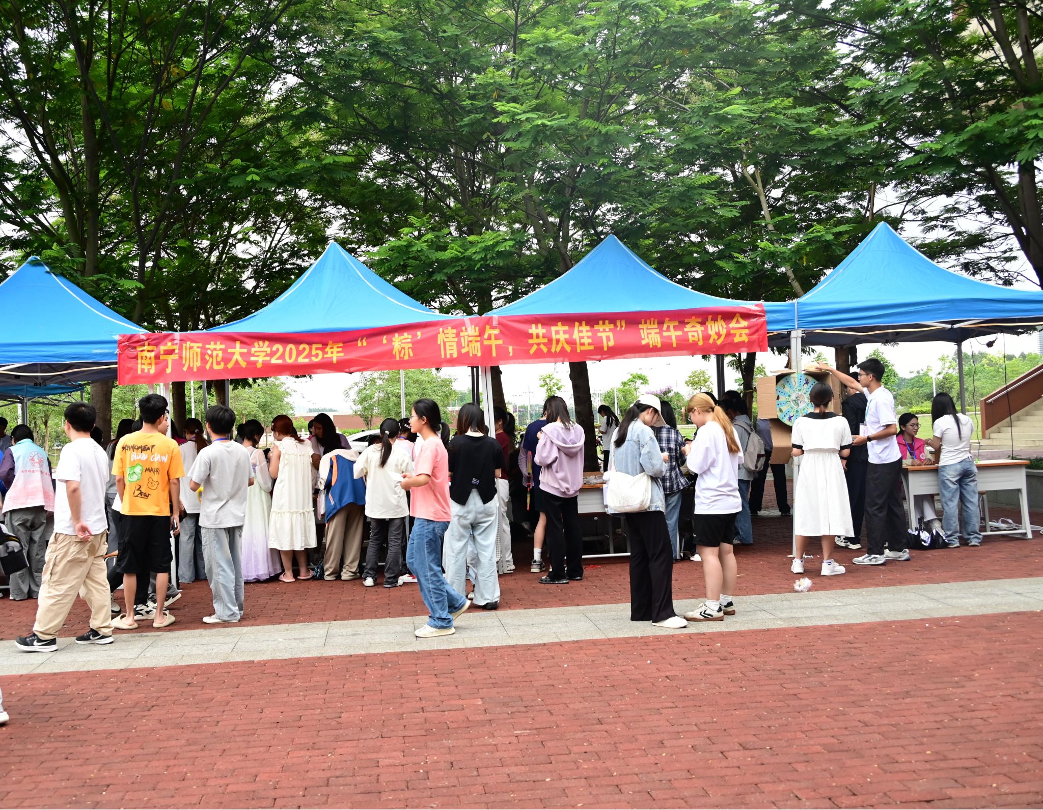 正值端午节来临之际,为进一步传承和弘扬中华优秀传统文化,营造浓厚的端午节氛围,beat365官网在武鸣、五合校区食堂校道前开展2025年“‘粽’情端午,共庆佳节”端午奇妙会活动。800余名同学踊跃参与,通过沉浸式体验,感受端午文化的独特魅力。