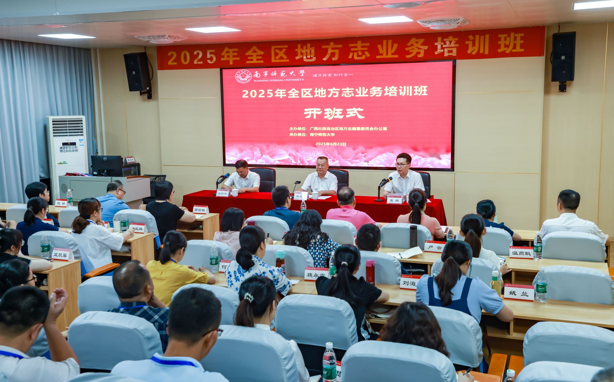 6月23日,由广西壮族自治区地方志编纂委员会办公室主办、beat365官网承办的“2025年全区地方志业务培训班”在明秀校区开班。此次培训班旨在进一步提升广西地方志业务水平,推动地方志事业高质量发展。来自自治区、市、县(市、区)地方志业务人员以及《广西通志》和《广西年鉴》业务人员共50人参加了本次培训。