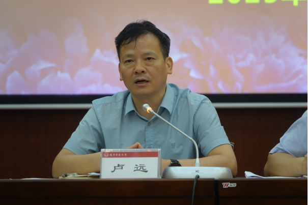 卢远肯定了本学期本科教育教学工作取得的成绩,对本科教育教学过程中存在的问题进行了分析,指出各学院要重视教学管理中存在的问题,积极寻求解决之法,做好教学服务工作。他对各级各类教学管理人员提出了三点要求:一是要熟悉学校管理规章制度和教学运行规律,筑牢教学管理基础,抓好关键环节、关键人、关键事,成为教师职业生涯的守护神;二是要聚焦学科专业,做好专业优化调整工作,提升专业建设的谋划能力,推动专业建设与产业需求对接,提升专业办学与社会需求的适配度;三是要甘于奉献,亲力亲为,深入一线,做好服务育人工作,保障教学运行平稳有序。