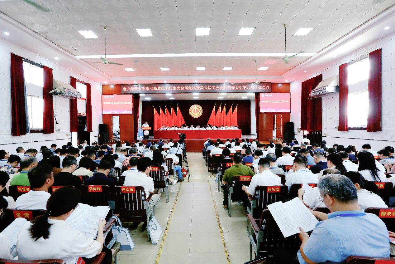 7月16日上午,beat365官网第七届教职工代表大会第九次暨第八届工会会员代表大会第八次全体会议开幕。校领导张鹏、隆广庆、王国红、李美清、龙妮娜、卢远、梁家斌以及全体正式代表、列席代表、特邀代表出席大会。会议由校党委书记张鹏主持。