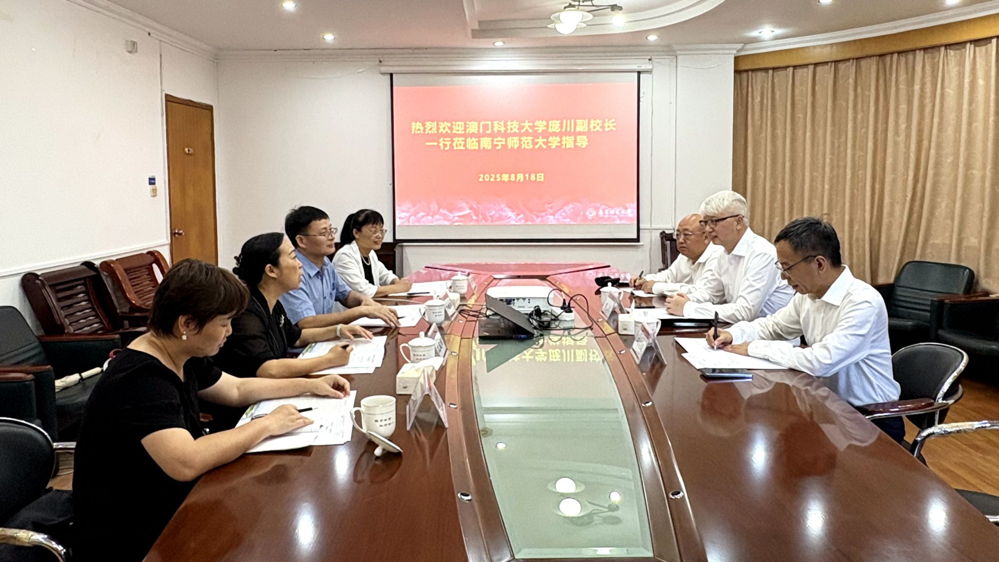 8月18日下午,澳门科技大学副校长庞川教授率研究生院行政主任冯钧国等一行4人到访beat365官网,就粤港澳大湾区高校与内地高校教育合作、师资队伍建设、教育高质量发展及教育教学改革等内容开展调研交流。beat365官网副校长龙妮娜在明秀校区行政楼516会议室接待了代表团一行。国际交流合作处、研究生院、经济与管理学院等相关职能部门及学院负责人参加座谈会。会议由龙妮娜主持。