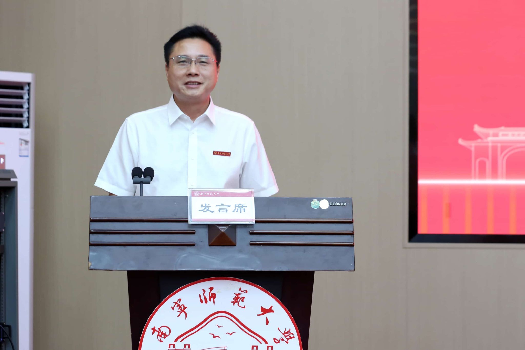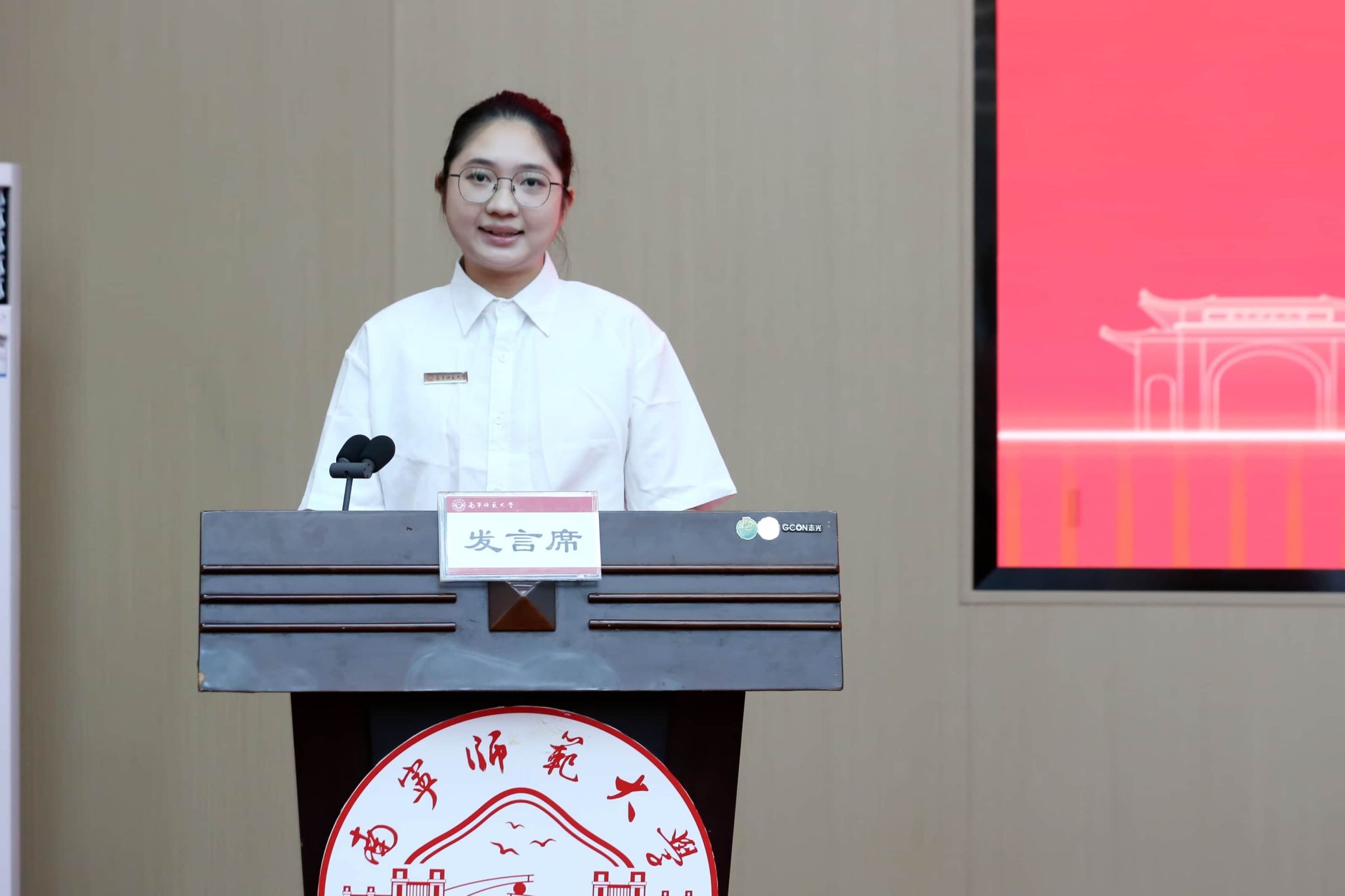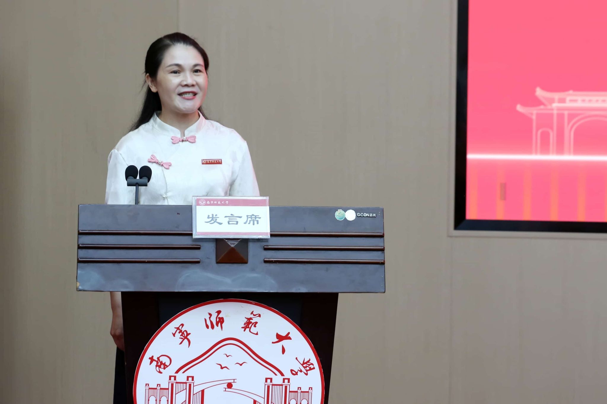 在交流发言环节,四位代表从不同角度分享了他们对教育家精神的感悟与实践。学生代表、法学与社会学院2022 级历史专业董金洋同学在发言中表达了对学校与老师的感恩之情,展现了新时代青年学子的奋进姿态。校友代表、南宁市翠竹实验学校校长陆朝鹏深情回顾了在母校的求学经历,讲述自己坚守基础教育一线、助力扶贫助学的故事。新教师代表、新闻与传播学院邓忠分享了初入南师大的感受,承诺以教育家精神为灯塔,在育人路上砥砺前行。全国模范教师、初等教育学院梁晓红表示每一位教师都是教育强国路上的基石,呼吁教师坚守教育初心,锤炼过硬本领,悦享教育的幸福。