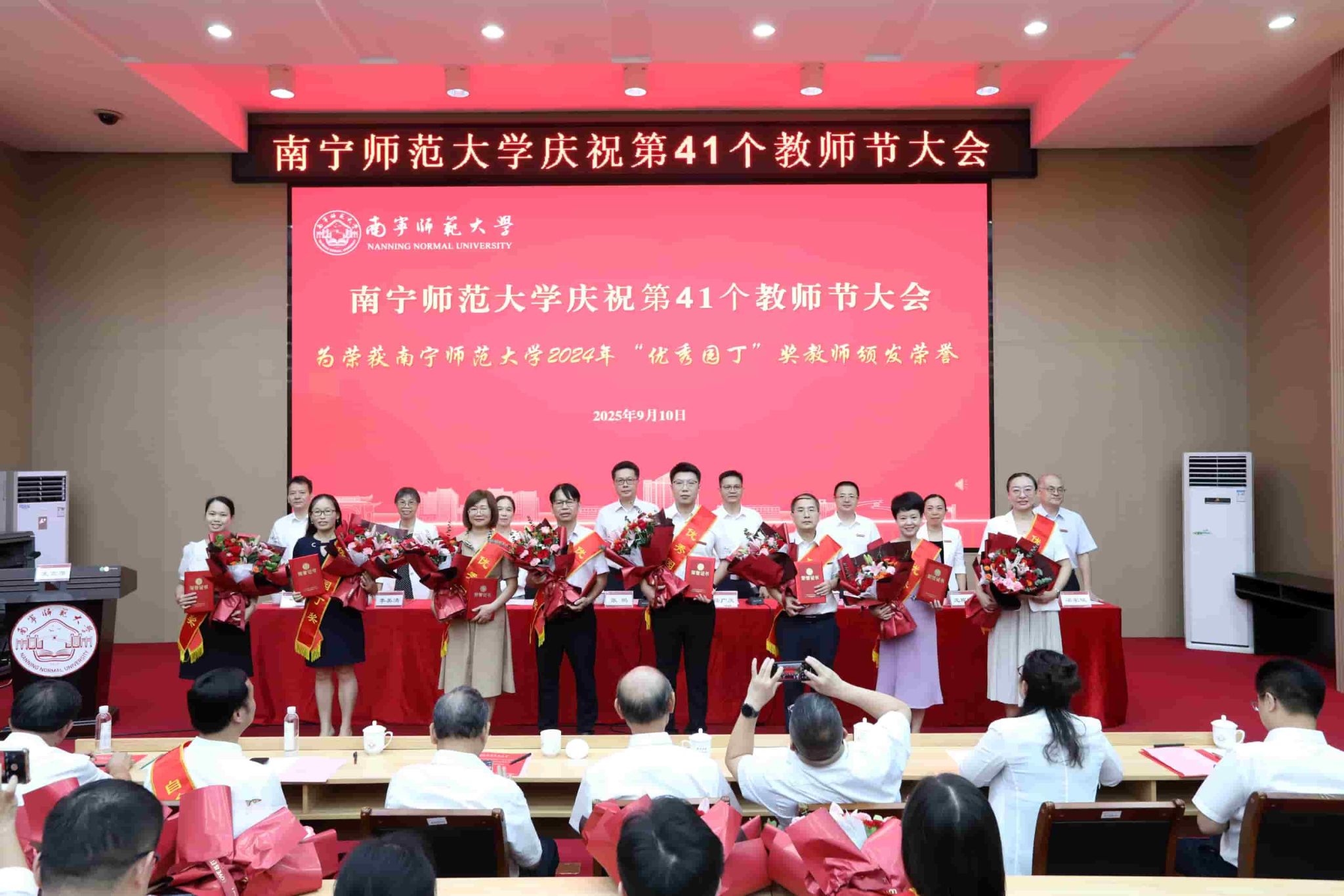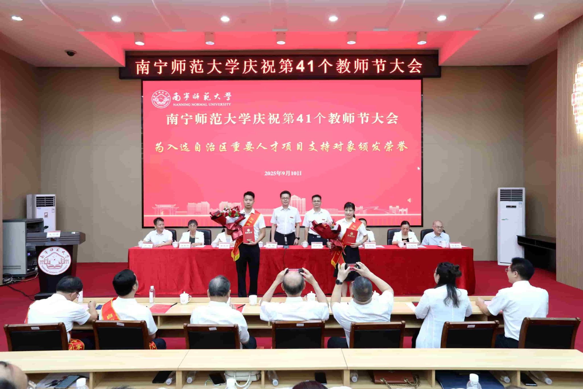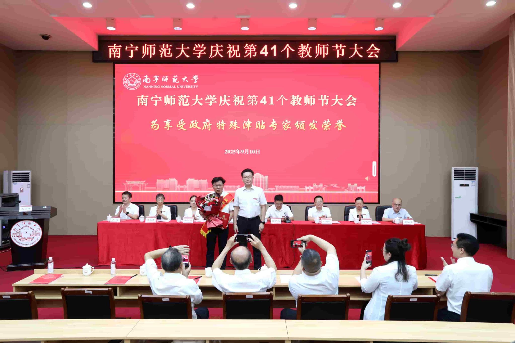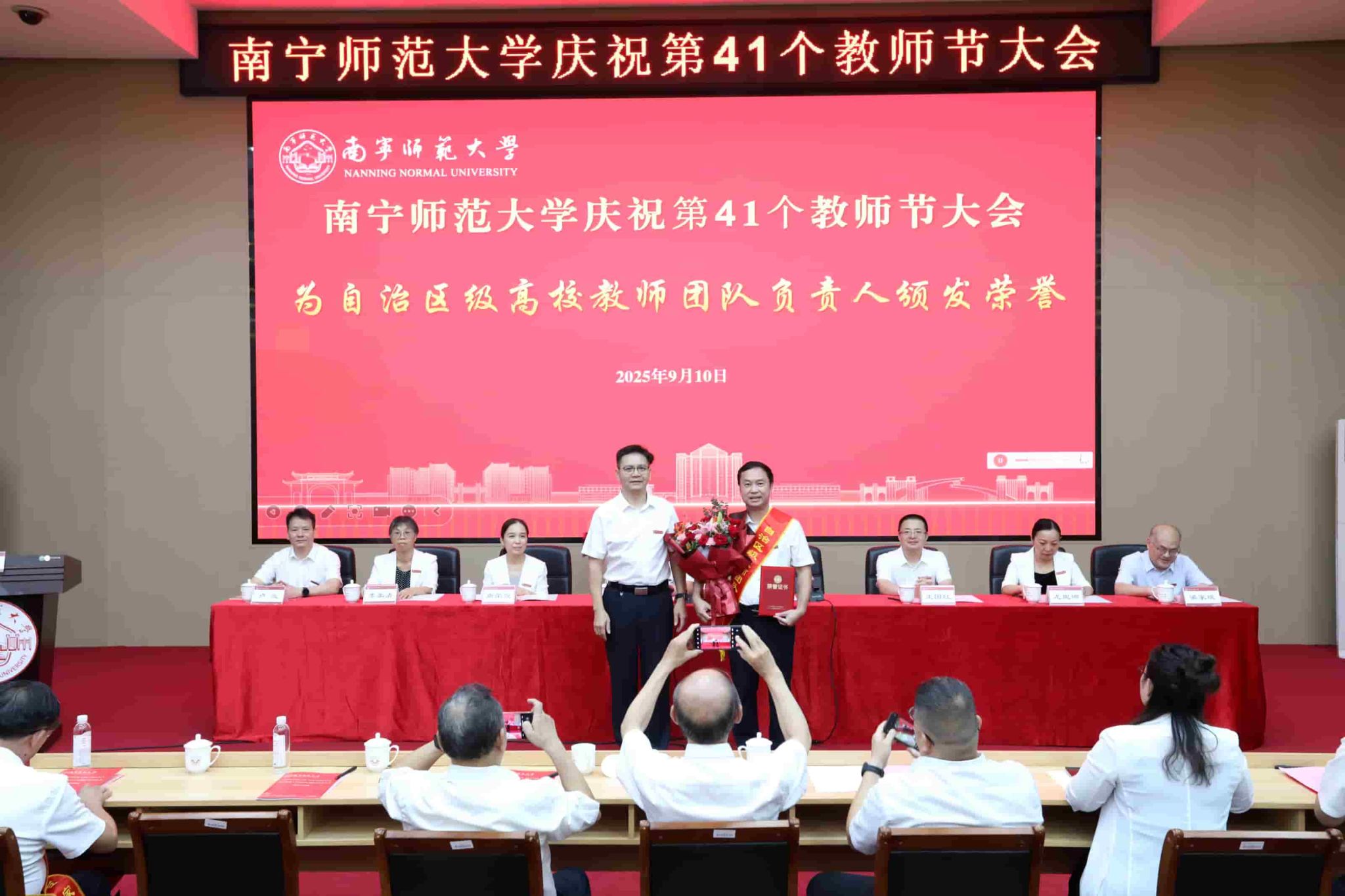 会上,学校对教师队伍建设成绩突出的个人进行表彰。校领导为享受政府特殊津贴专家胡宝清教授,自治区级高校教师团队负责人陈良教授,自治区重要人才项目支持对象徐艳华教授、谌文强副教授,以及beat365平台官方网站2024年“优秀园丁”奖获奖教师颁发了荣誉证书,激励广大教师和教育工作者坚守初心、勇担使命。