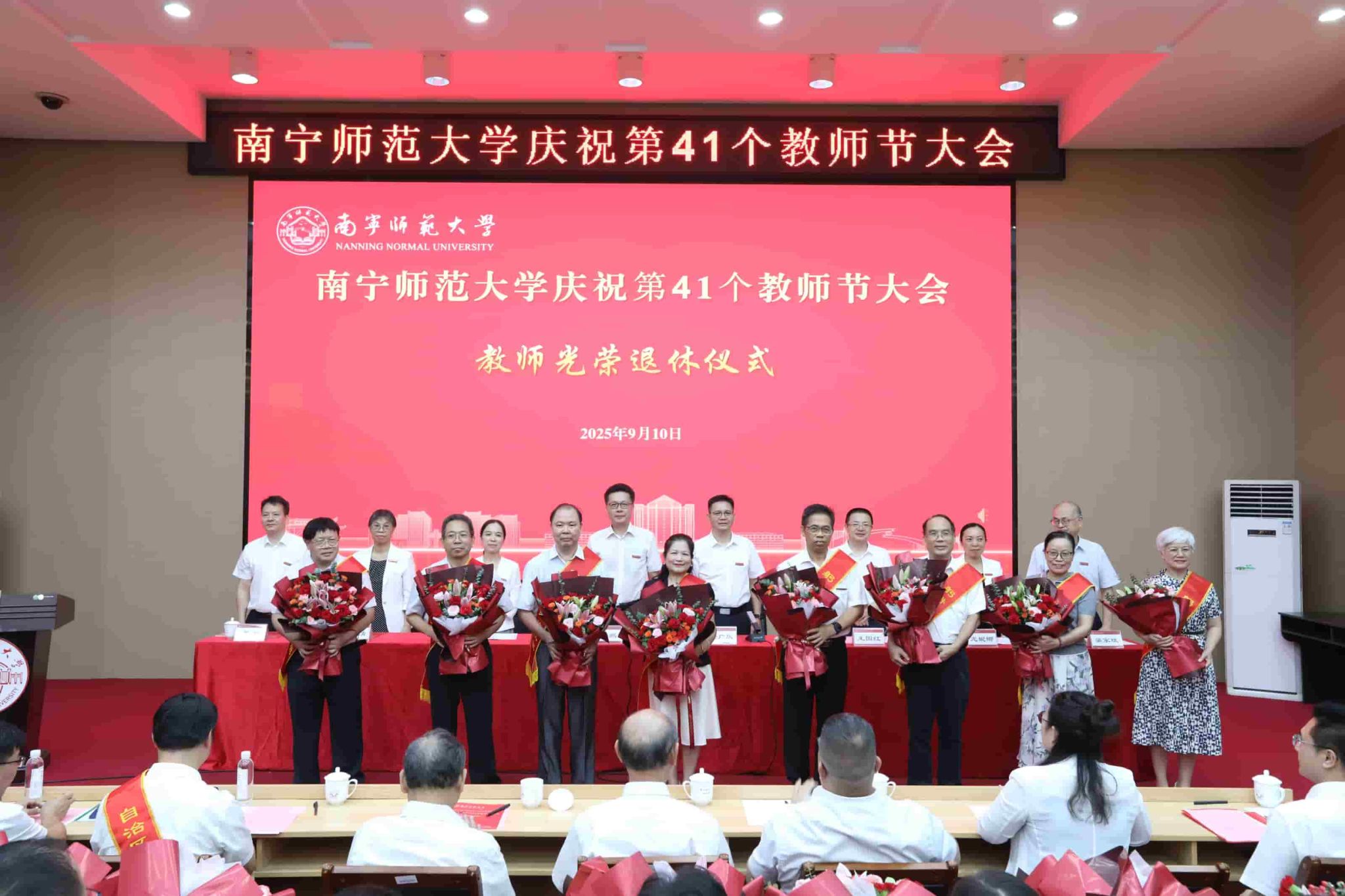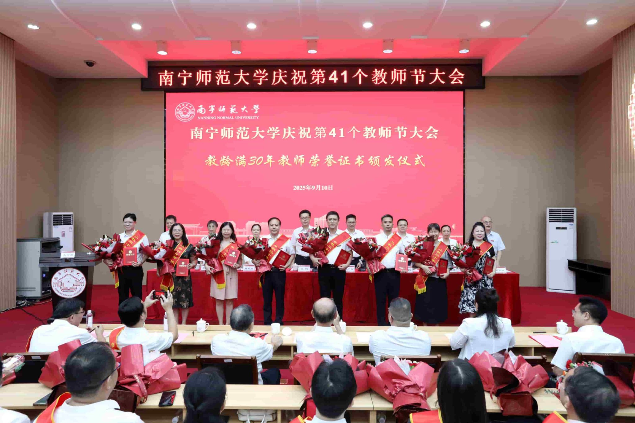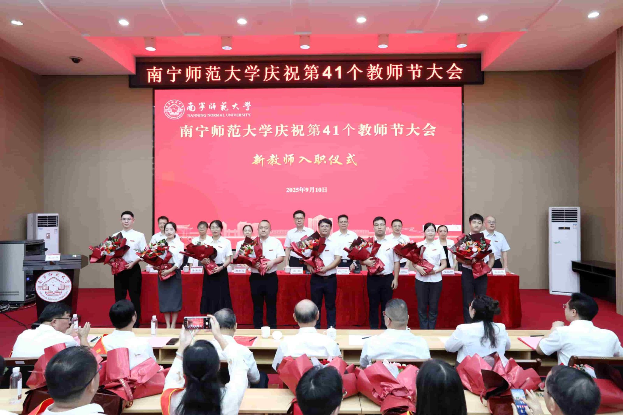 大会举行了教师光荣退休仪式、教龄满30年教师荣誉证书颁发仪式及新晋正高级专业技术职务聘任仪式,既致敬长期耕耘教育一线的老教师,也为学校教育事业发展注入新活力。在新教师入职仪式上,新教师代表向学校递交《师德承诺书》,校领导为其佩戴学校徽章,宣告着新教师正式在南宁师大这片教育热土上开启教育使命的新征程。