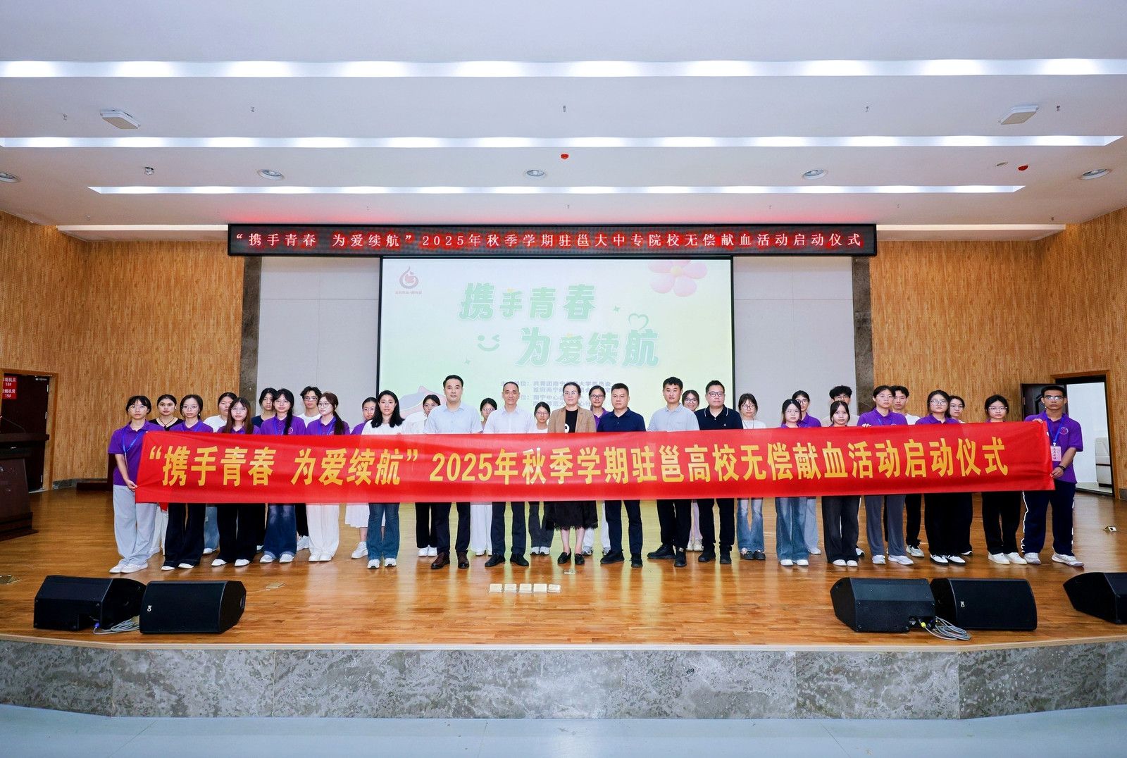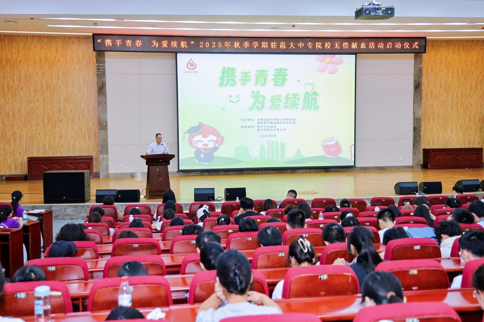 9月14日,“携手青春 为爱续航”2025年秋季学期驻邕高校无偿献血活动启动仪式在beat365官网武鸣校区举办,南宁中心血站负责人,学校国内合作处、校团委负责人以及师生代表400余人参加了本次启动仪式。