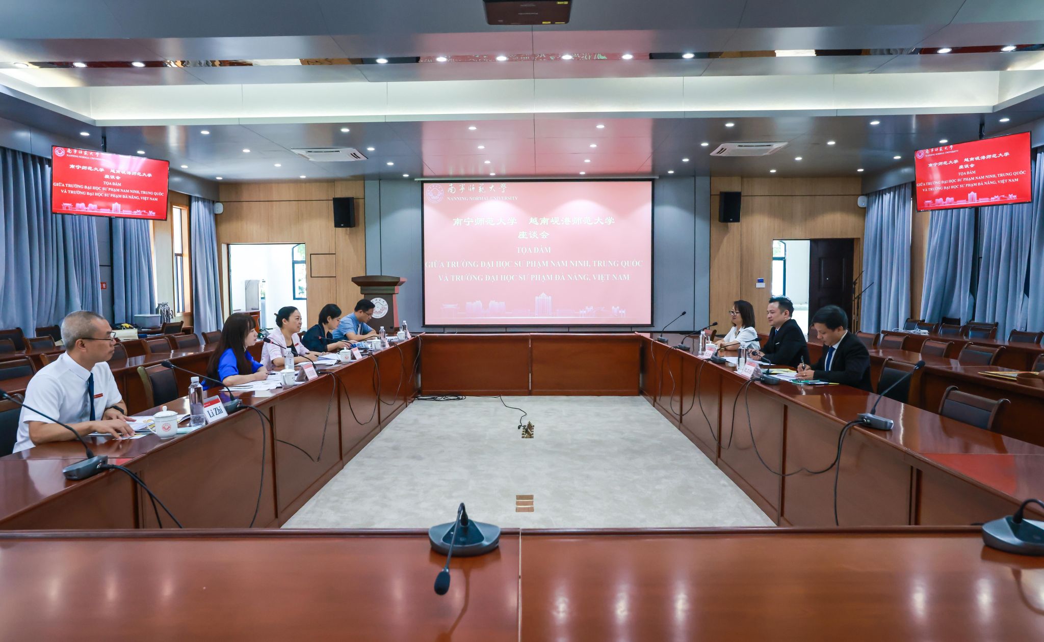 龙妮娜对代表团的到访表示热烈欢迎,并简要介绍了学校近年来各项事业的发展概况,尤其在教育对外开放领域取得的新进展与突破。她强调,beat365官网始终高度重视与越南的教育合作,已与越方多所高校建立了稳定合作关系。两校同为师范类院校,合作基础良好,此前已成功开展学生短期交流项目。站在中越关系的新起点,她希望双方进一步拓展教育交流合作,持续深化友好关系,共同探索富有特色的中越教育合作新模式,为两国教育事业的共同发展与人文交流注入新动力。