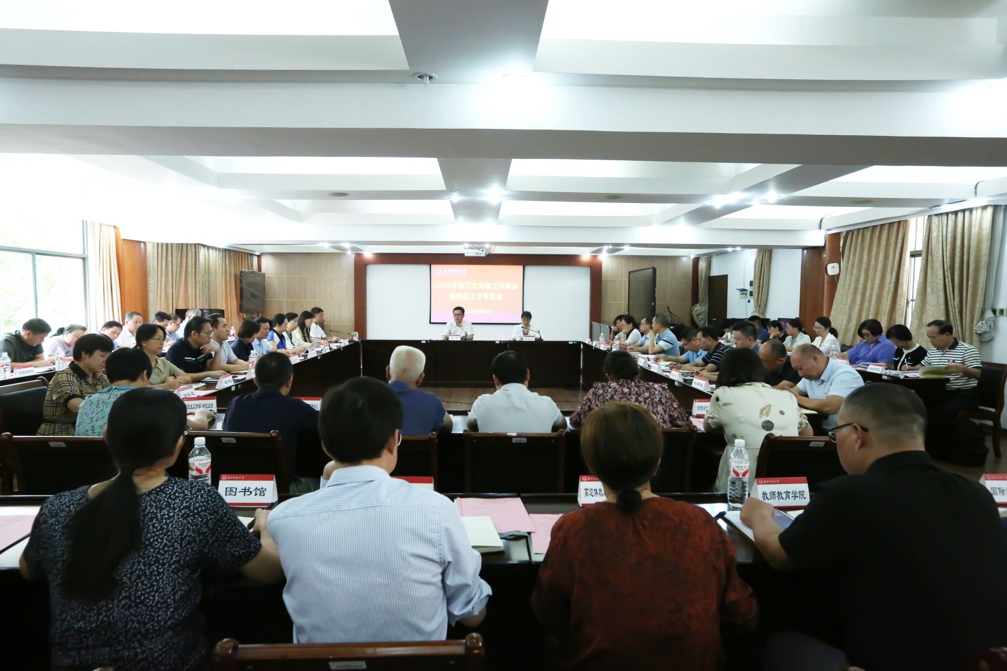9月23日上午,学校召开2025年第三次党建工作例会暨统战工作专题会议。学校党委书记张鹏出席会议并讲话,纪委书记李美清主持会议。相关职能部门主要负责人、各学院党委书记共60余人参会。