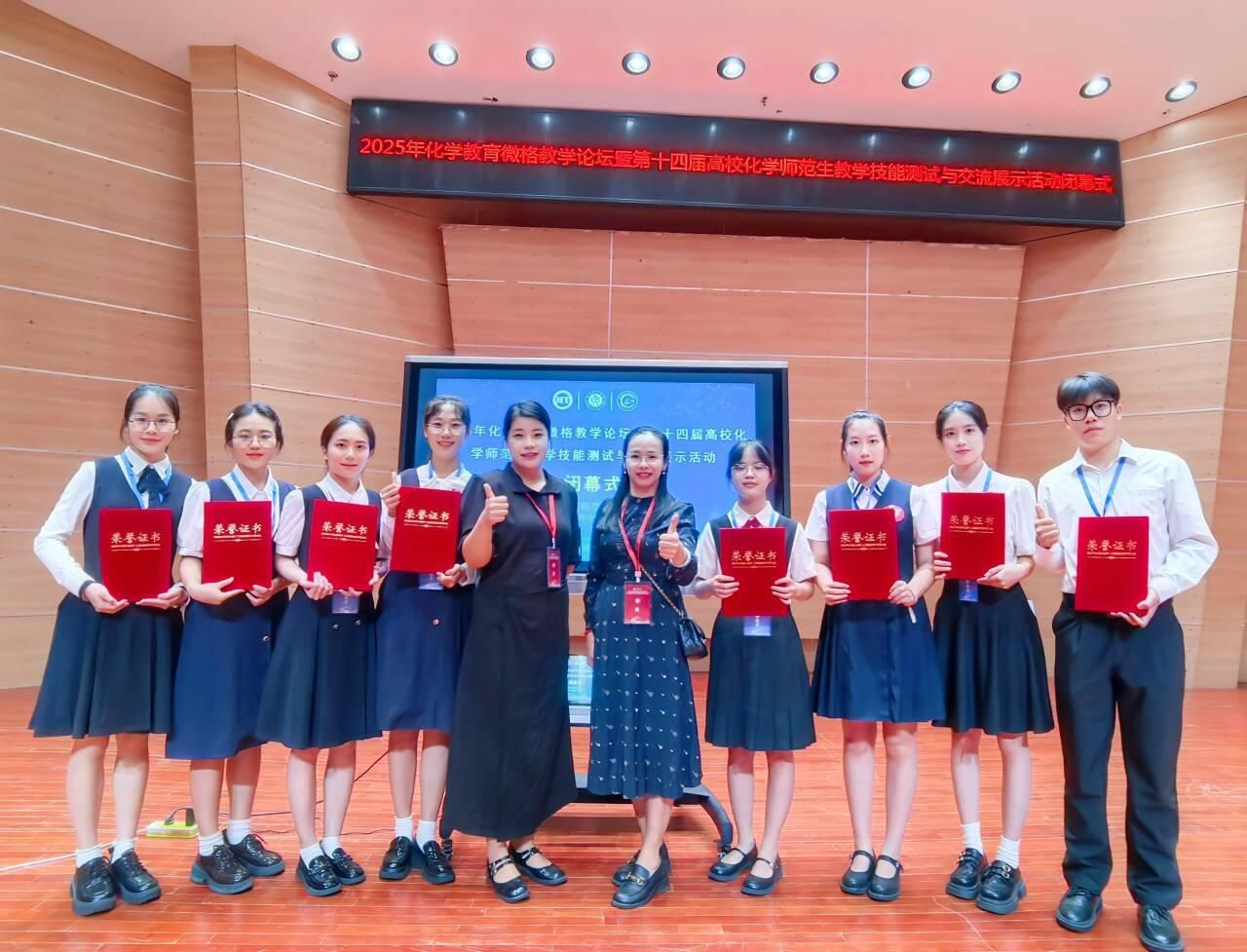 9月19日至22日,化学教育微格教学论坛暨第十四届全国高校化学师范生教学技能交流展示活动在重庆师范大学落下帷幕。beat365官网化学与材料学院选派8名学子参赛,凭借深厚的专业积累与出色的教学实践能力,在全国高校同台竞技中表现优异,共获一等奖4项、二等奖1项、三等奖3项。
