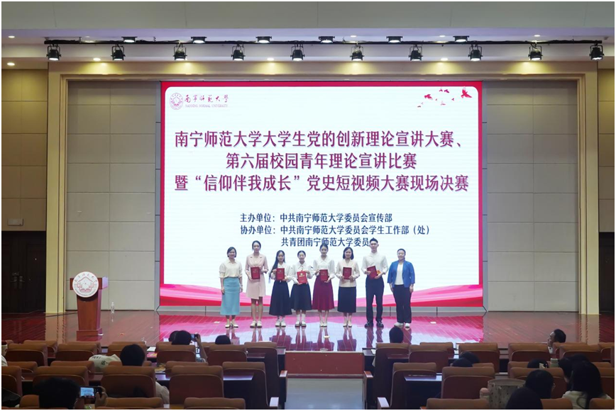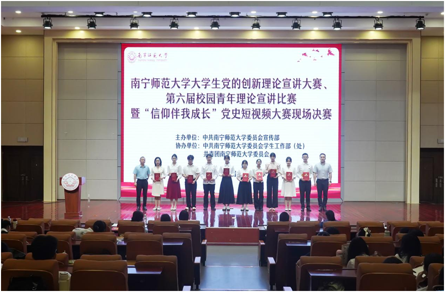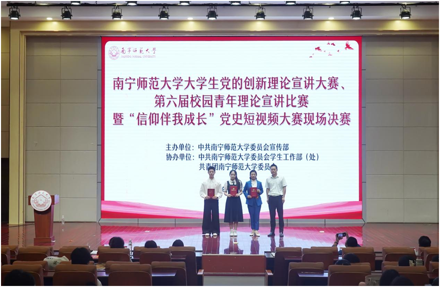 9月27日,由校党委宣传部主办,党委学生工作部(处)、校团委协办的beat365平台官方网站大学生党的创新理论宣讲大赛、第六届校园青年理论宣讲比赛暨“信仰伴我成长”党史短视频大赛现场决赛在五合校区举行。学校党委宣传部部长纪明担任评委并致辞,党委学生工作部部长刘君宇、马克思主义学院党委书记李玲、法学与社会学院副院长(主持工作)吴少进、校团委副书记何俊斌应邀担任评委。近300名师生现场观摩决赛。