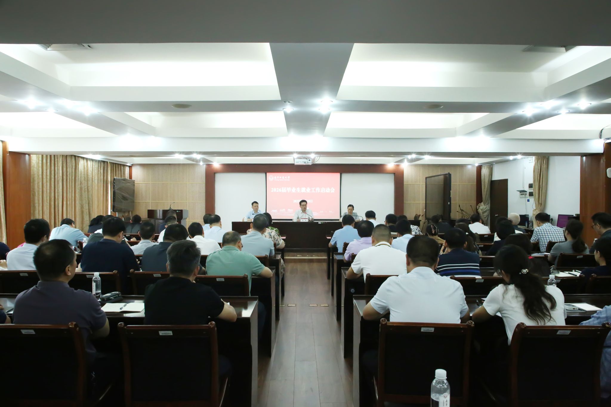 会上,张鹏对学校2025届毕业生就业创业工作成效表示肯定,并就扎实推进2026届毕业生高质量充分就业提出三点要求:一要提升政治站位,深刻认识推动毕业生高质量就业对于践行“为党育人、为国育才”使命、落实国家“就业优先战略”以及支撑学校高质量发展所具有的重要意义。二要科学分析形势,密切关注国家和自治区政策导向,积极应对当前毕业生就业面临的结构性矛盾与市场变化带来的挑战。三要聚焦重点环节,全面压实“一把手”责任,强化全校“一盘棋”统筹,深化“一揽子”帮扶举措,健全“一本账”跟踪机制,系统提升就业工作质量与实效。