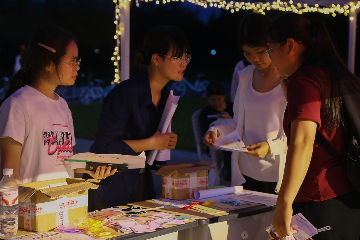 本次游园活动内容丰富多彩,设置了多个活动体验区域,同学们凭借智慧与运气闯关赢取专属“南师银票”,换取小夜灯、陶瓷手链、怪兽指环等心仪礼品。在“骰子转转转”处,大家专注掷骰子,完成单脚站立、写下对祖国和学校祝福;“记忆翻翻乐”区域,参与者全神贯注,努力翻出相同的卡片,每一次成功都引来阵阵喝彩;手工艺术体验区人气爆棚,成为同学们留住双节美好记忆的创意空间。与此同时,还开展了“中秋诗会”“稻穗快跑”“百步穿杨”“诗词接龙”等多个特色活动,同学们穿梭其中,打卡体验,满是青春活力。
