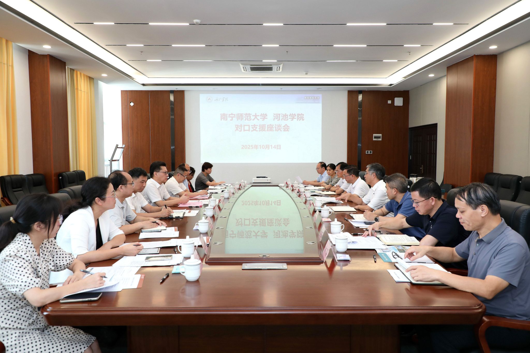 张鹏一行受到了河池学院党委书记甘毅、校长马少健的热情接待。座谈会上,甘毅介绍了两校对口支援的丰硕成果与未来展望。他表示,自对口支援关系确立以来,beat365官网开展了全方位、多层次、宽领域的支援,为河池学院实现赶超式高质量发展注入了强劲动力。他对beat365官网长期以来的支持表示感谢,希望beat365官网今后进一步提供人才强校、申硕攻坚、资源共享、党建引领等方面的支持,助力河池学院实现转型发展。