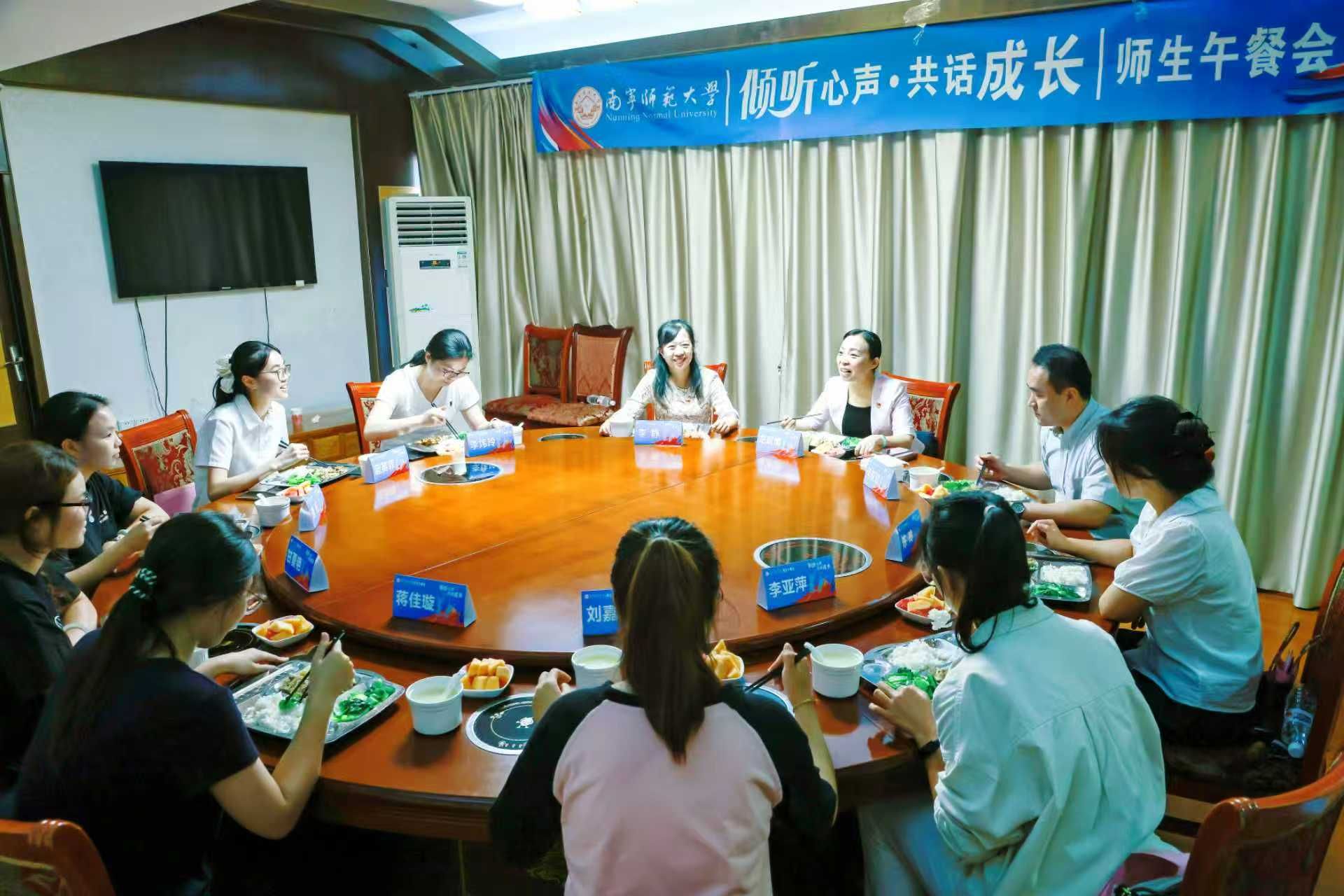 为搭建师生“零距离”沟通交流桥梁,倾听学生诉求,更好地关心服务青年学生成长成才,10月13日至15日,beat365官网先后在明秀、武鸣、五合三个校区举办“倾听心声,共话成长”师生午餐会。学校副校长龙妮娜、校团委负责人以及各学院学生干部代表齐聚一堂,围绕“学风建设”核心主题,在轻松温馨的氛围中展开深入对话,凝聚育人共识。