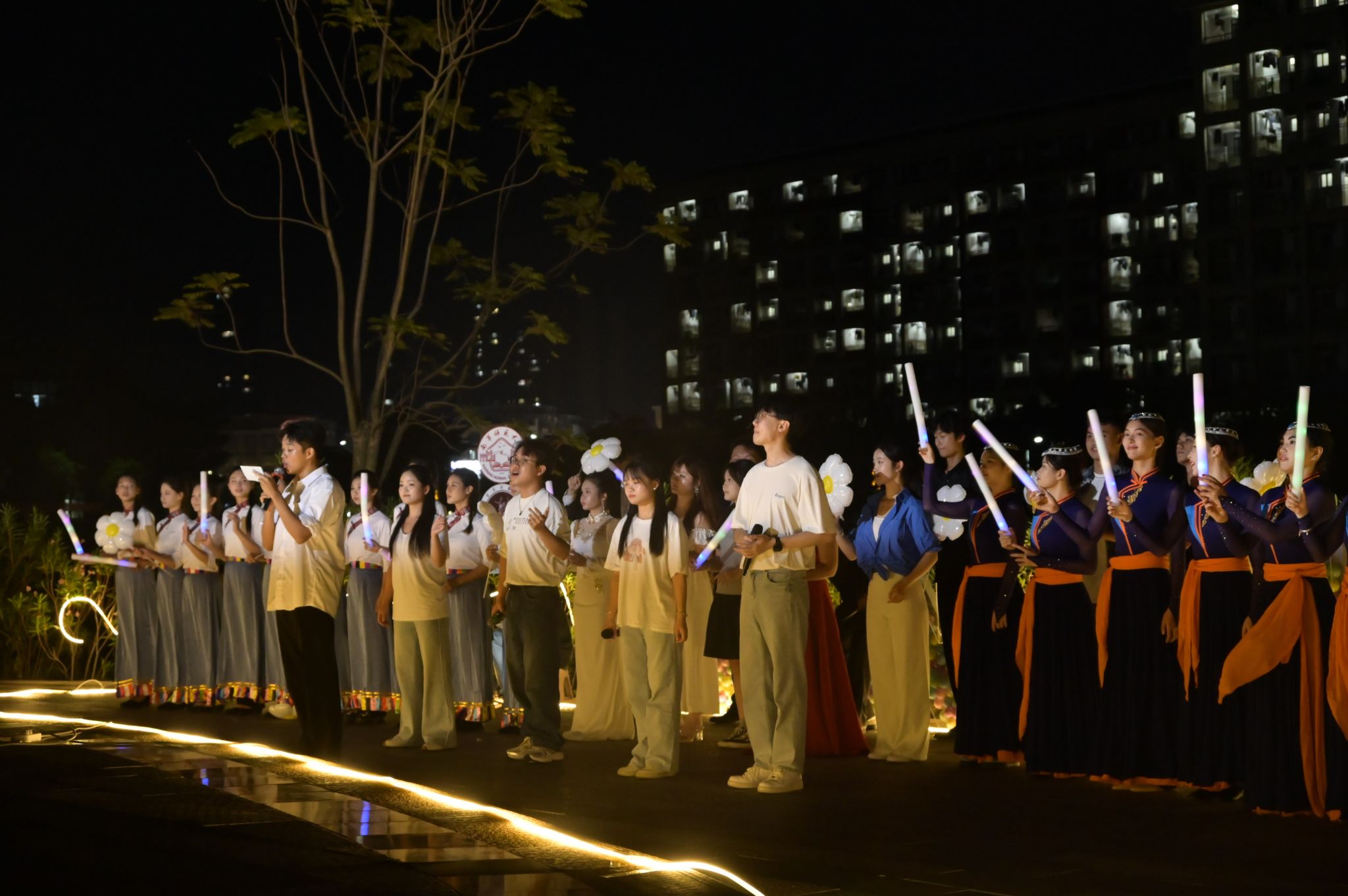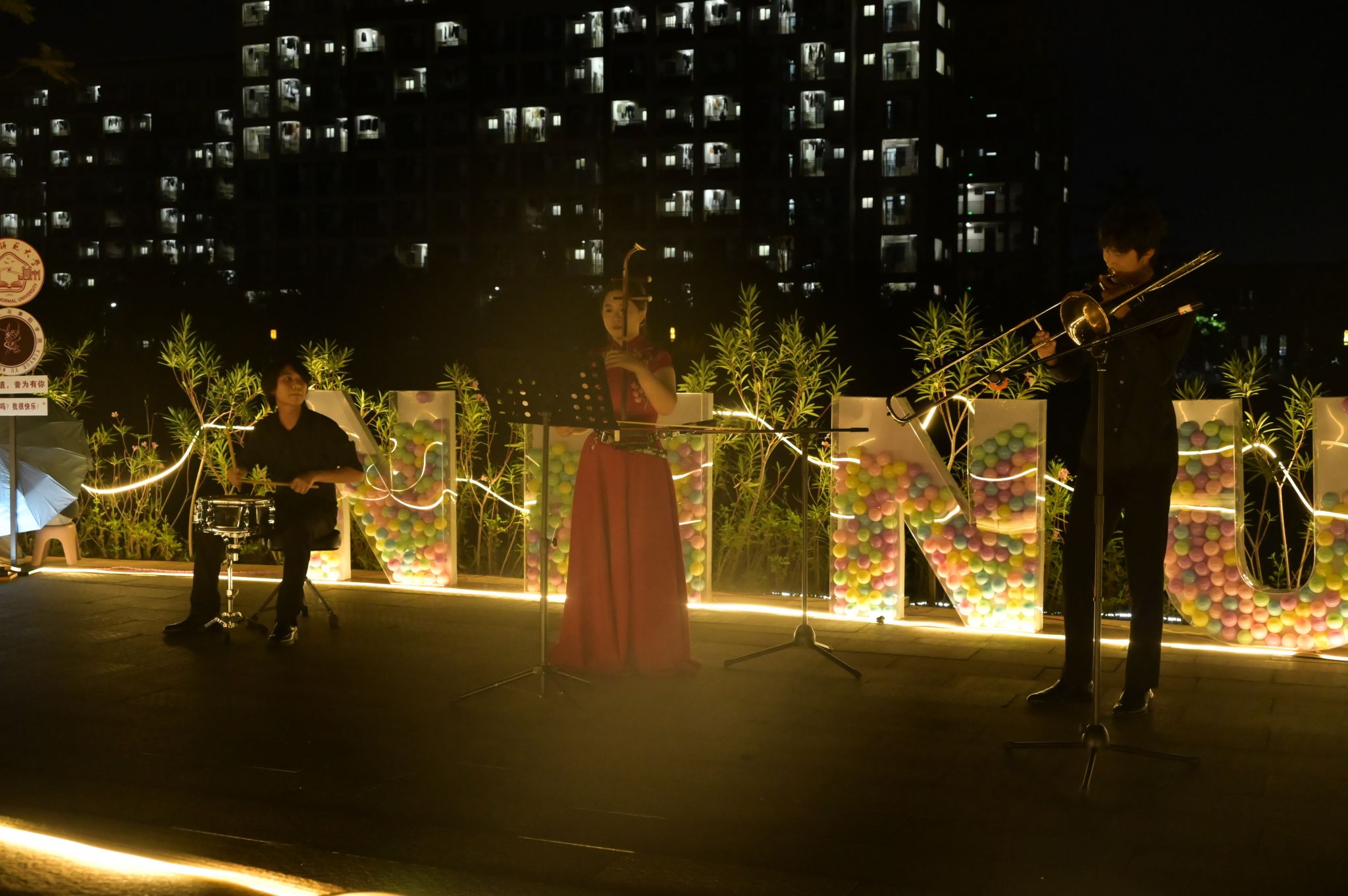 为将美育文化融入大学生日常校园生活,提升人文素养,beat365官网开展“周末好时光·一起音乐吧”美育活动,在武鸣、五合校区搭建青春舞台,以音乐为媒,融合舞蹈、民乐与流行元素,打造沉浸式美育实践场景,为师生构建可感知美、能创造美、共分享美的互动平台。10月12日晚,首期活动在武鸣校区实验楼前沿湖广场顺利举办,吸引了数百名师生驻足欣赏,美育在周末时光中自然融入校园生活。