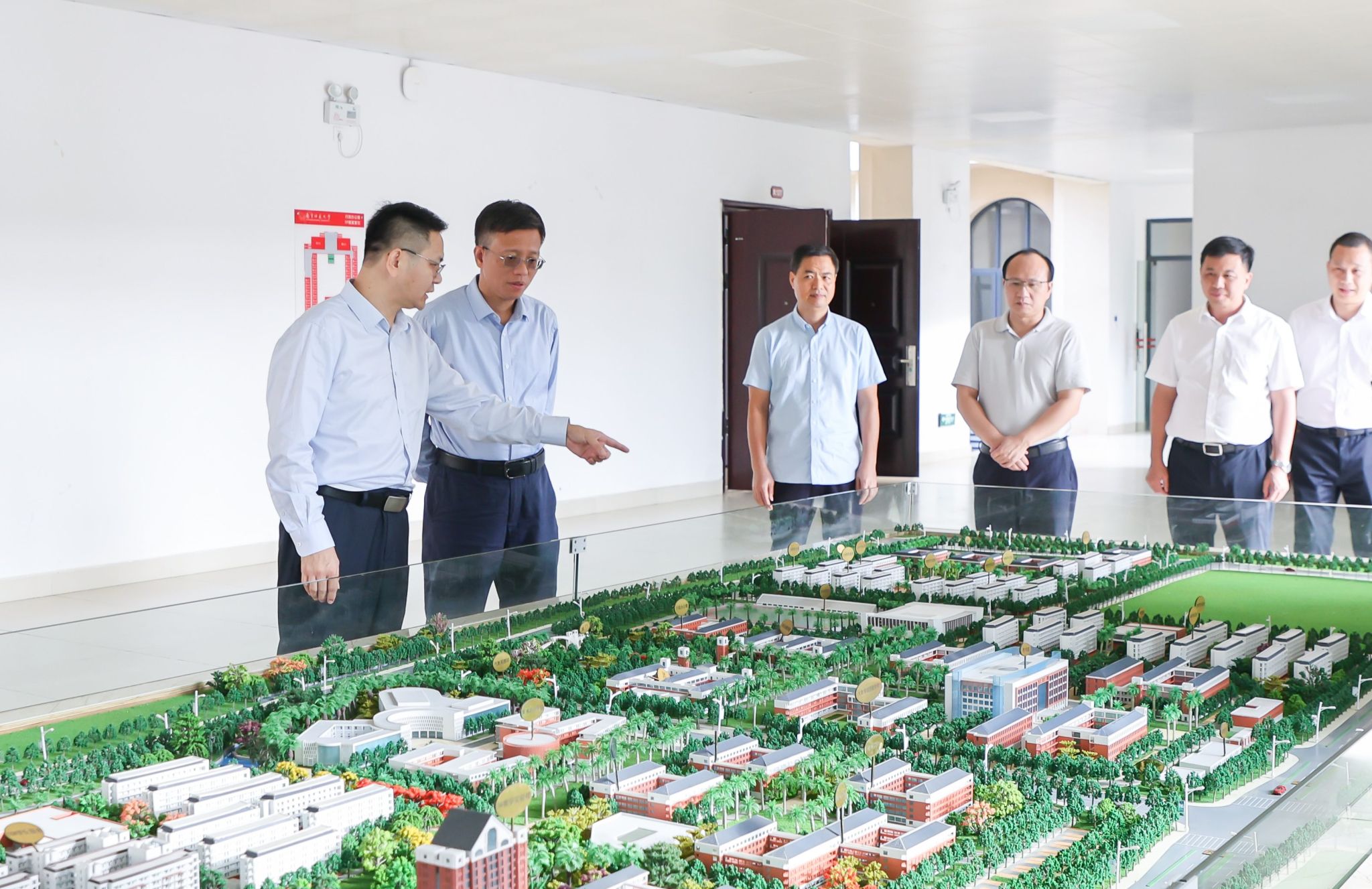 会后,隆广庆陪同自治区体育局一行参观考察学校校园。