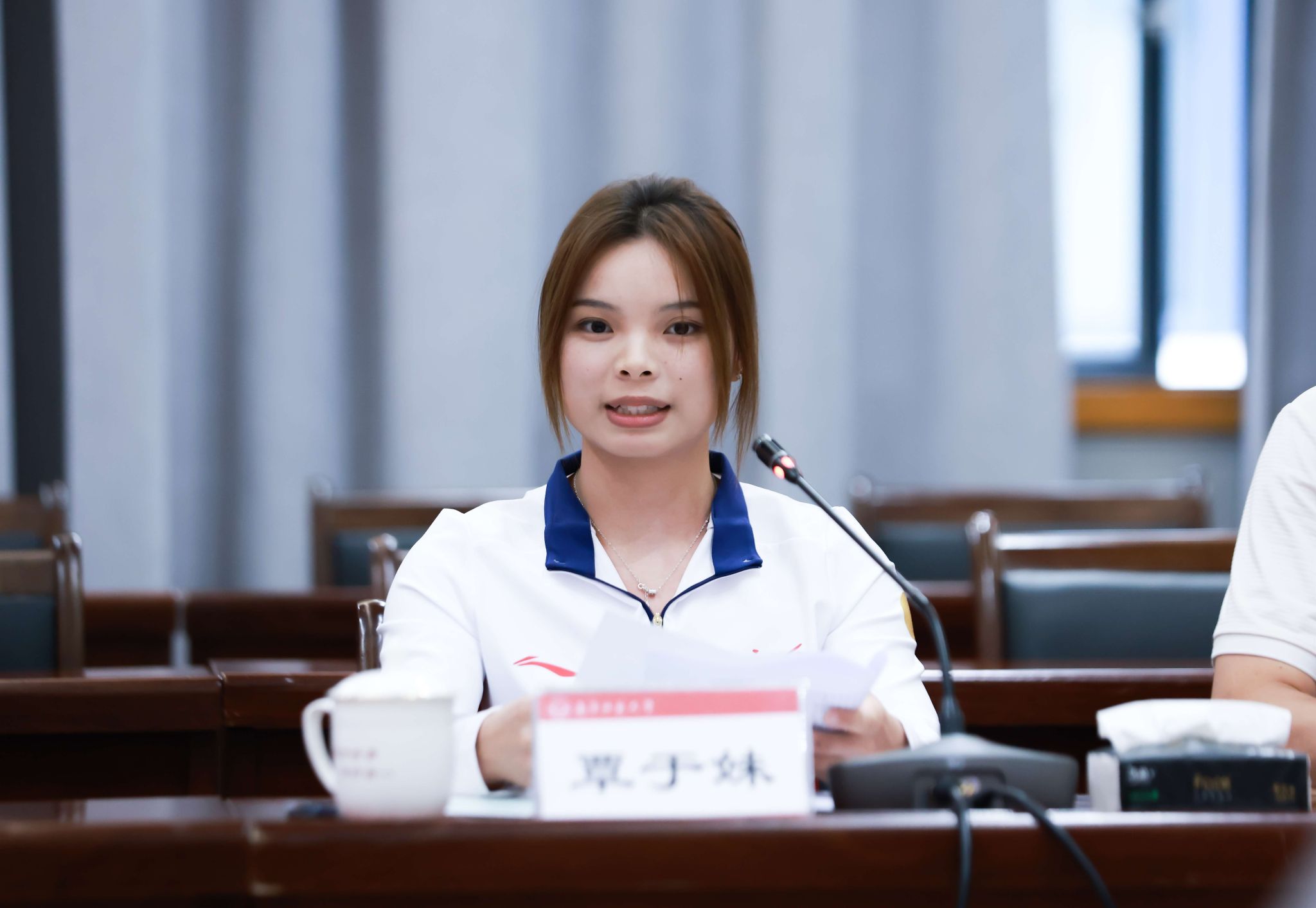 新入学的2025级运动训练专业学生、广西优秀攀岩运动员覃于妹分享了她的感受及未来的学业规划,她感谢自治区体育局的培养与输送,也感谢beat365平台官方网站提供的宝贵学习机会,表示将珍惜校园时光,努力实现运动成绩与学术修养的双重提升,继续为广西和国家争光。