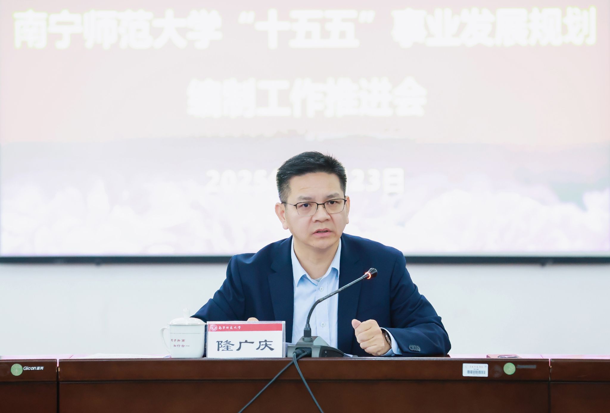 隆广庆对学校“十五五”发展规划编制工作成效给予肯定,同时也针对各专项规划在目标设定、任务举措、工作进展等方面存在的问题提出具体指导意见。隆广庆指出,当前虽然各专项小组和相关单位已初步开展了调研论证工作,但仍存在一些亟待解决的突出问题。他要求:要提高思想认识和政治站位,准确把握国家和自治区关于“十五五”规划编制的核心要求,把握正确的办学方向;要坚持问题导向与目标导向相统一,做好调研论证,学习借鉴同类兄弟高校先进经验,围绕学校党代会报告、全面深化改革等重要文件找准问题和目标;要加强统筹协调,注重规划体系的系统性和整体性。规划编制工作领导小组要发挥好牵头抓总作用,各职能部门之间要打破壁垒,加强沟通协作,确保形成一个定位准确、边界清晰、功能互补、统一衔接的规划体系;要狠抓落实,以高度的政治责任感和扎实的工作作风推进规划编制。要将“十五五”规划编制作为当前最重要的工作之一,严格按照时间节点完成各阶段任务,高质量完成规划编制。