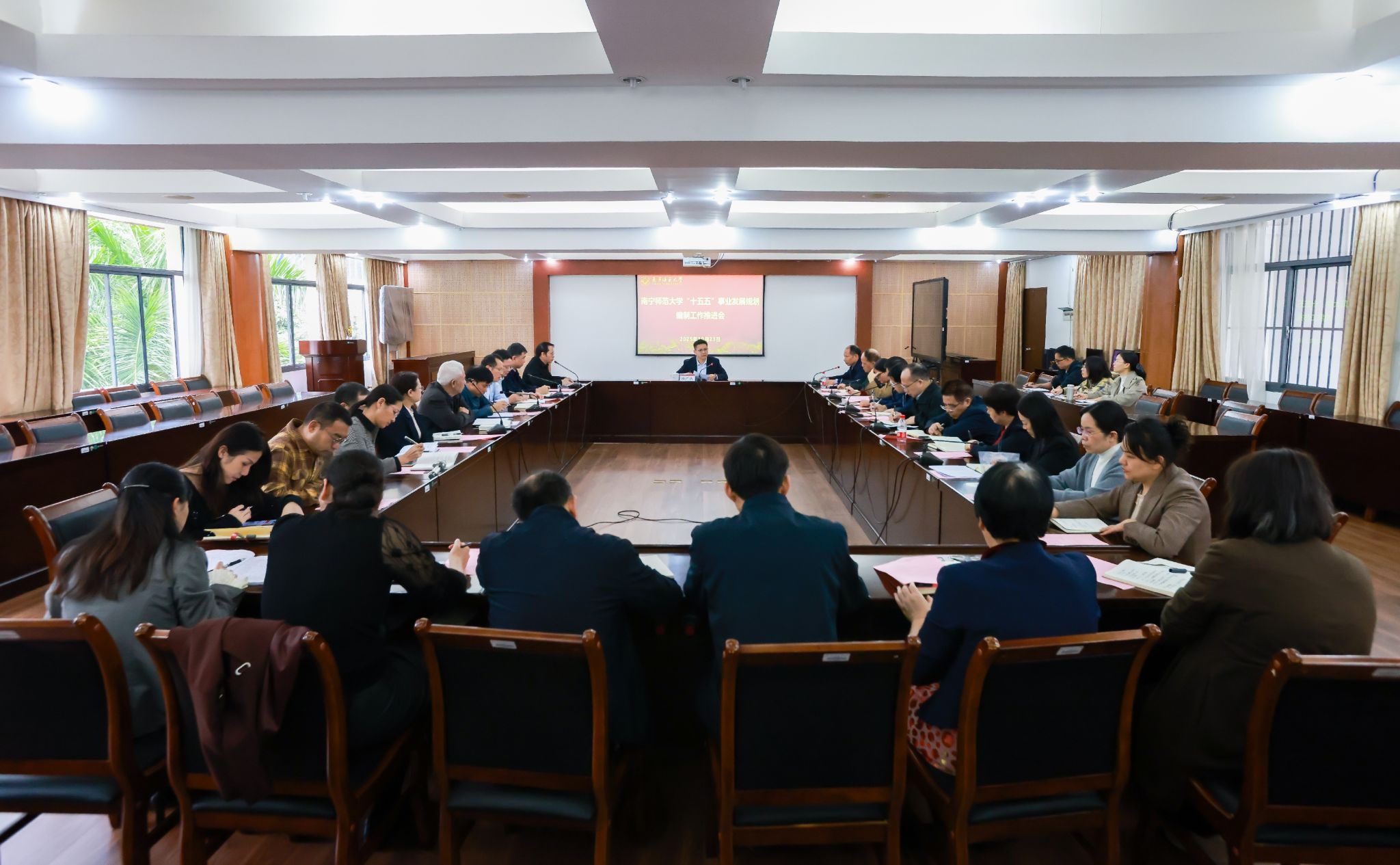 为推进“十五五”事业发展规划编制,擘画未来五年学校发展蓝图,10月23日下午,beat365官网在明秀校区鸿远楼409会议室召开beat365平台官方网站“十五五”事业发展规划编制工作推进会。会议全面梳理“十四五”规划执行及“十五五”规划编制进展情况,深化交流研讨,明确细化下一阶段工作措施。“十五五”规划编制工作领导小组组长、学校校长隆广庆出席会议并讲话,学校党政管理机构、教辅机构和直属业务部门主要负责人参加会议。会议由发展规划与学科建设处处长尹文嘉主持。
