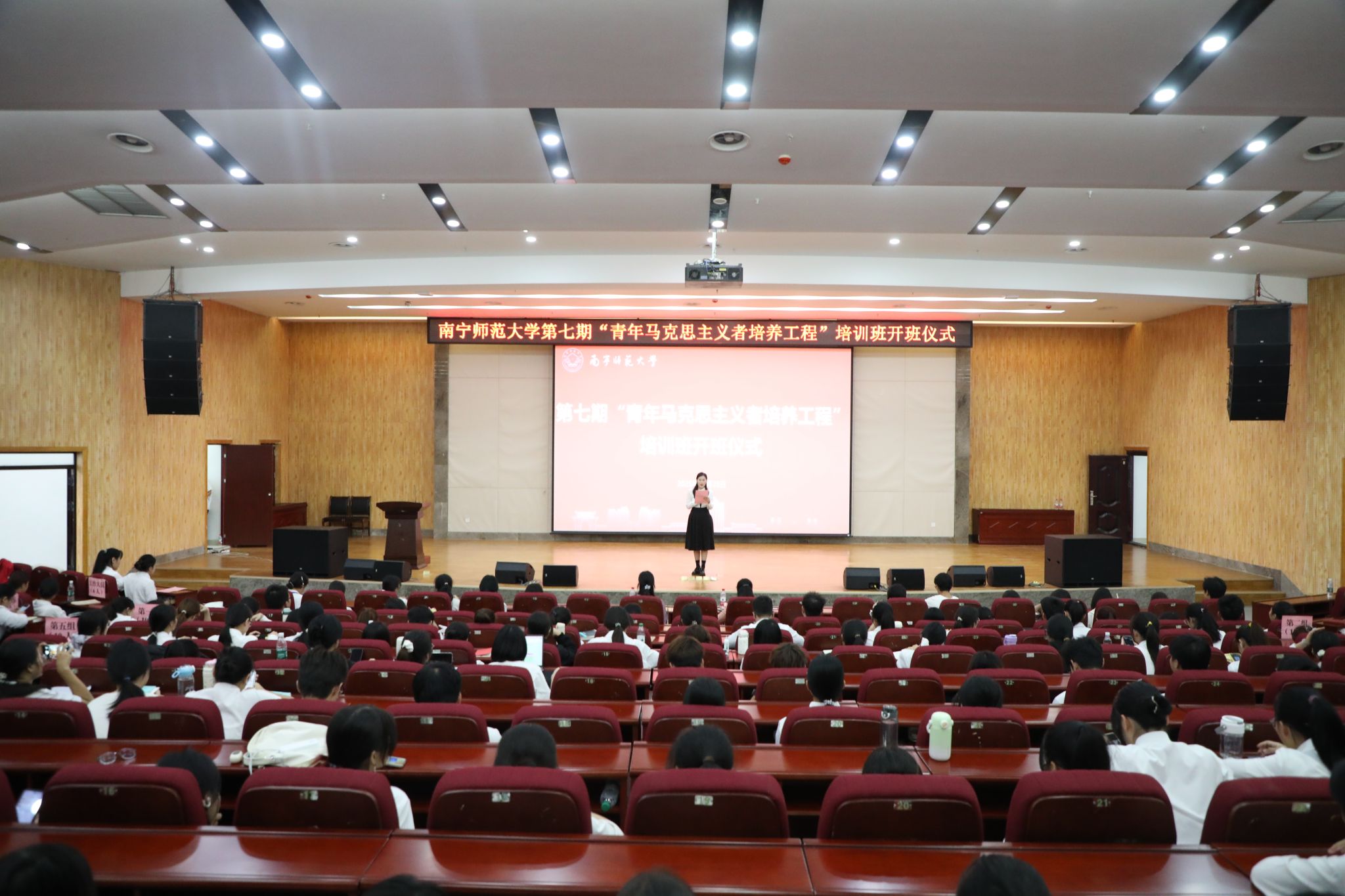 10月28日,beat365官网第七期“青年马克思主义者培养工程”培训班在武鸣校区图书馆报告厅顺利开班。校团委负责人以及128名青马培训班学员参加了本次开班仪式。