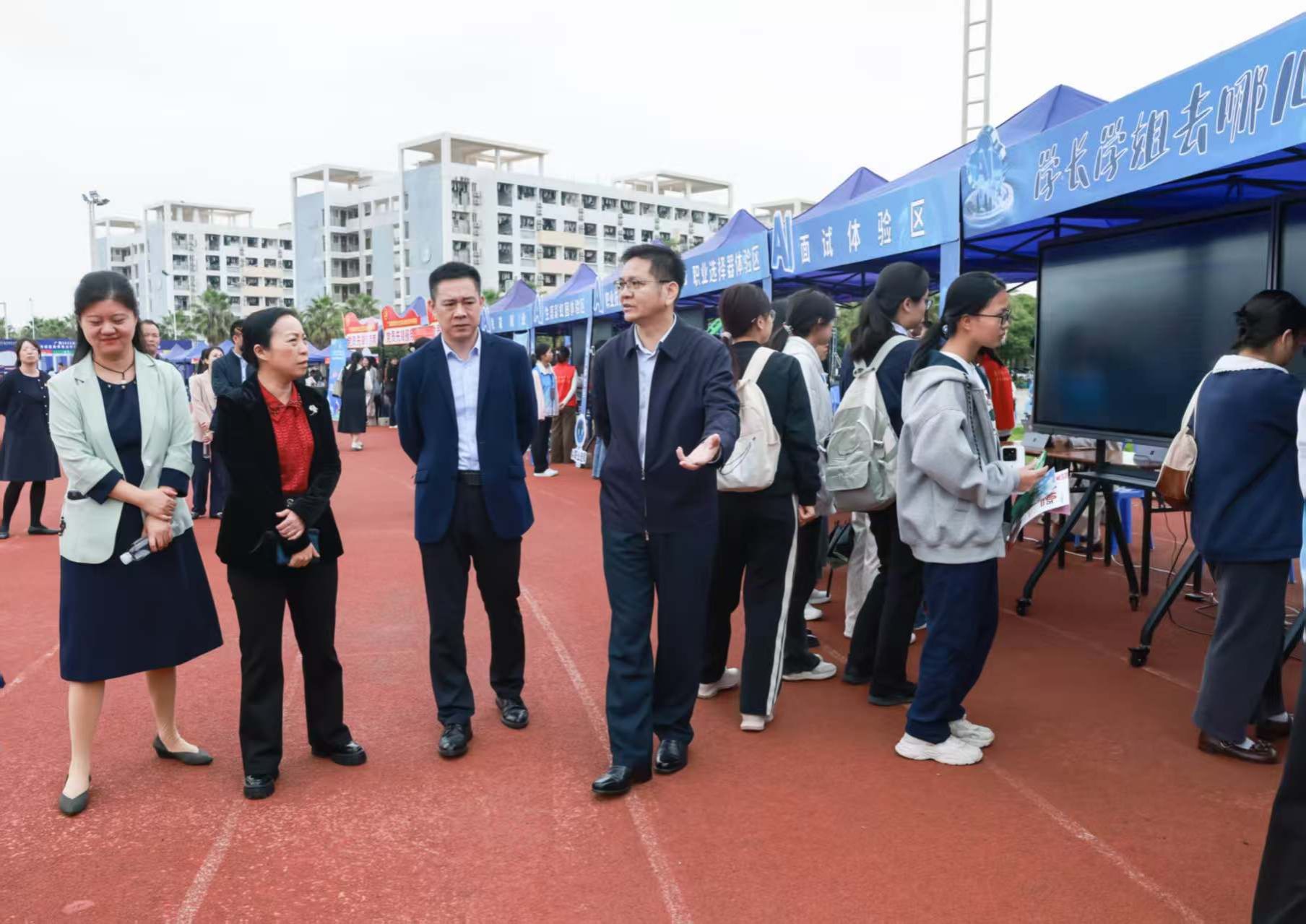 双选会得到各级领导高度重视。自治区教育厅副厅长傅源方,高校学生工作处正处级干部宋潇潇,教师工作处副处长彭科,beat365官网校长隆广庆、副校长龙妮娜等有关领导莅临现场指导工作,开展访企拓岗促就业专项行动,慰问用人单位代表,并与招聘负责人和毕业生亲切交流,深入了解社会需求与求职进展,为优化供需对接机制提供了重要参考。
