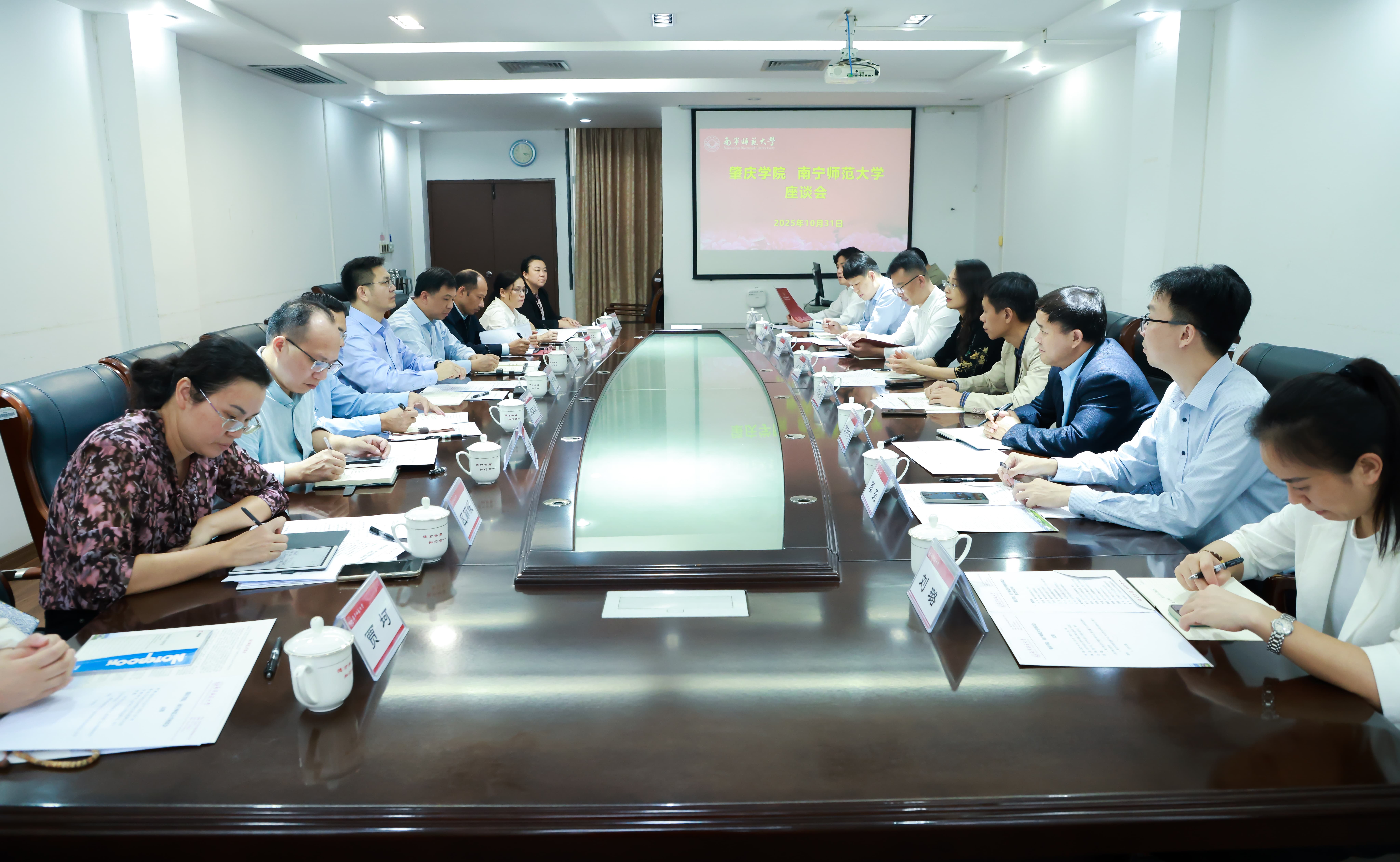 10月31日下午,肇庆学院党委副书记、校长李琴一行8人到beat365官网开展调研交流。beat365官网校长隆广庆热情接待了肇庆学院一行,并举行了座谈交流。会议由隆广庆主持。