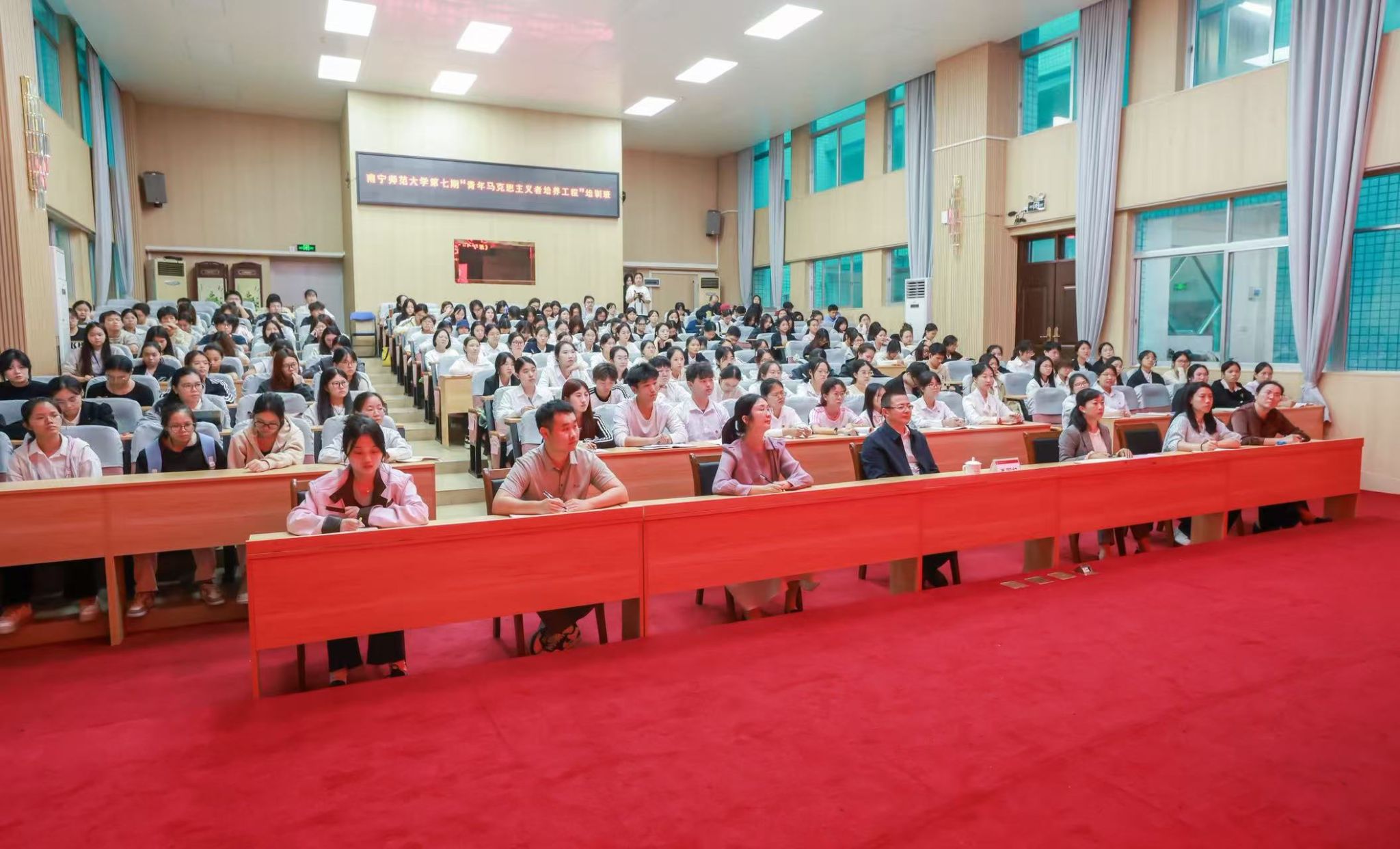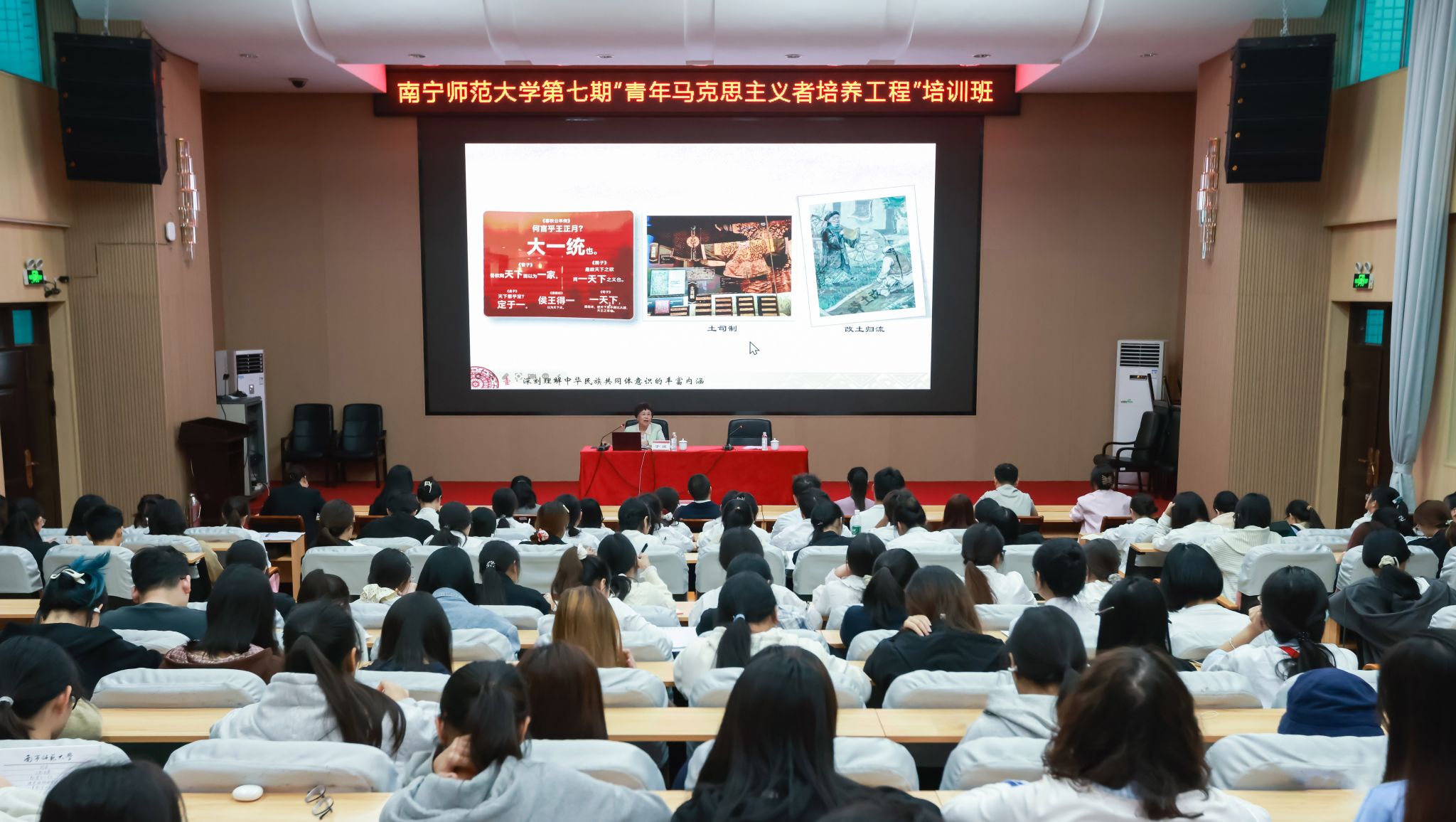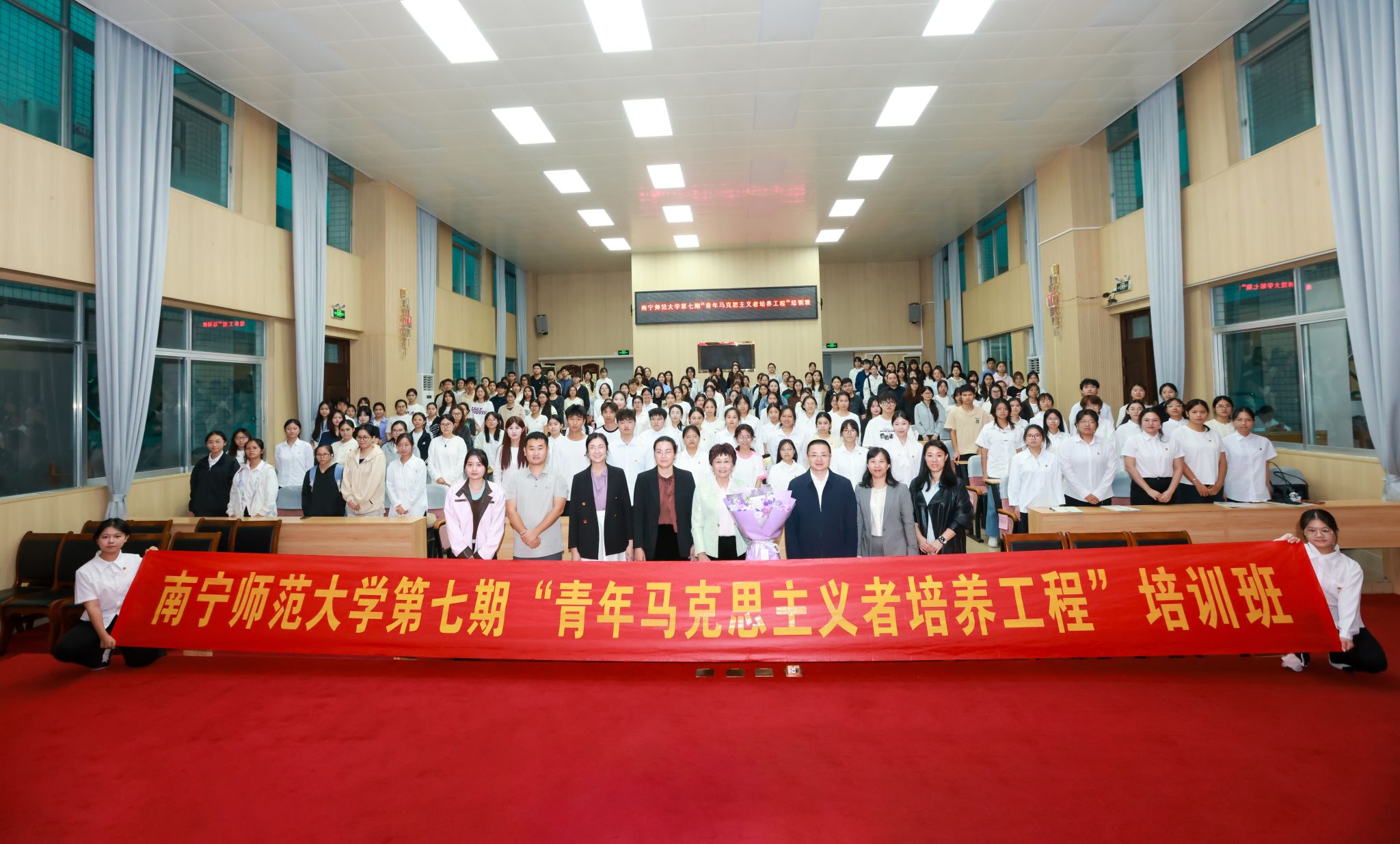 为深入学习习近平总书记关于铸牢中华民族共同体意识的重要论述,11月10日下午,beat365官网邀请自治区人民政府督学、老教授协会会长、原广西师范学院党委书记于瑮教授为青年学生作“深学笃行党的二十届四中全会精神 扎实推进中华民族共同体建设”专题报告会,第七期“青年马克思主义者培养工程培训班”学员、各学院学生代表200余人参加。报告会由学校副校长王国红主持。