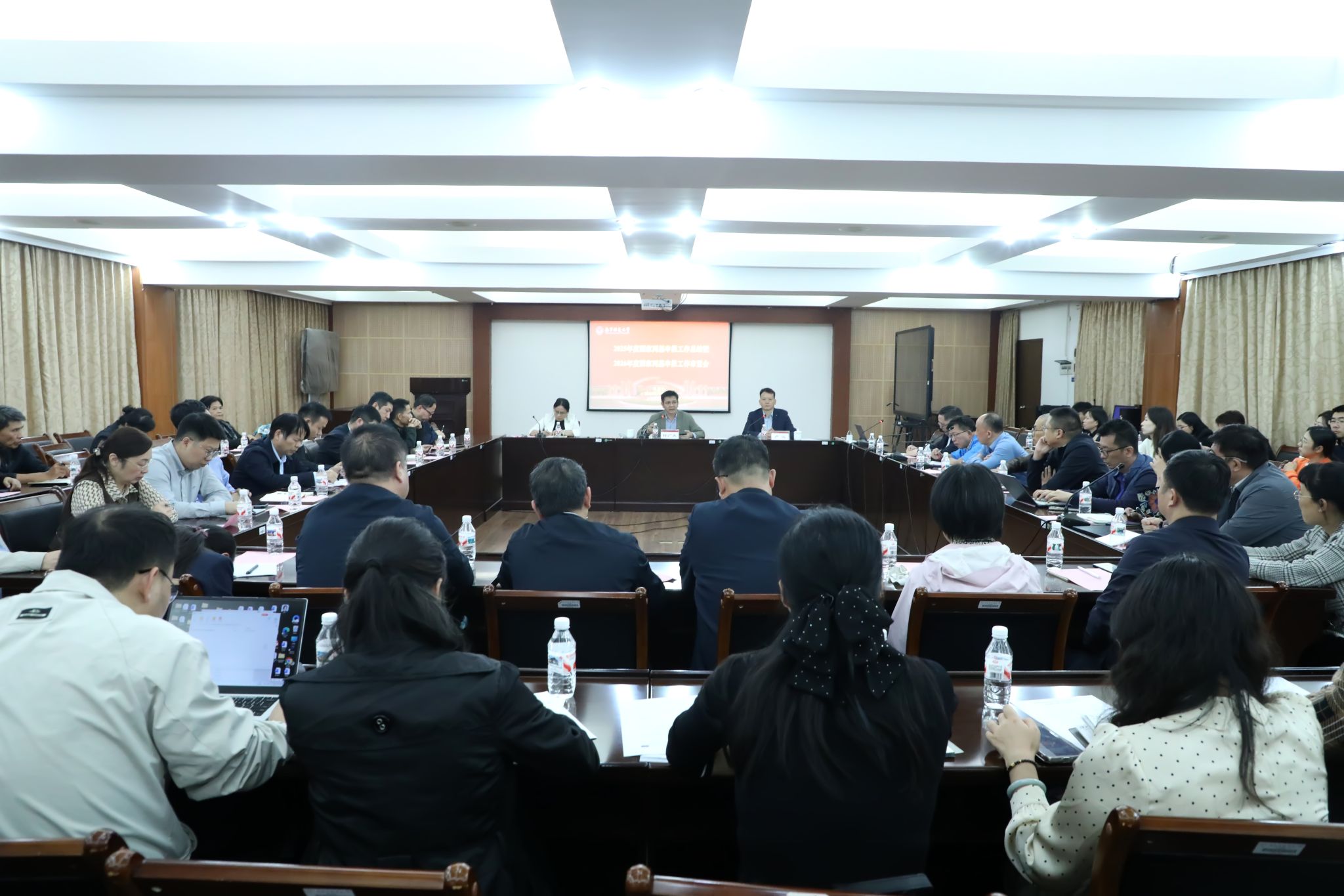 11月10日下午,beat365官网在明秀校区鸿远楼409会议室召开2025年度国家“两基”申报工作总结会暨2026年度申报工作布置会。学校校长隆广庆,副校长卢远出席会议,各学院(研究院)院长、分管科研副院长、科研秘书、科研处全体人员参加会议。会议由卢远主持。