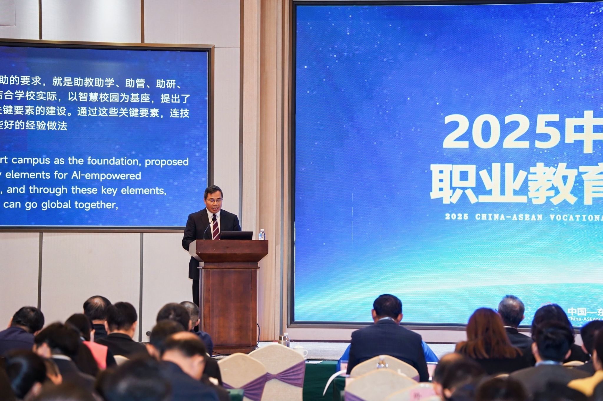 11月15日,由教育部职业教育发展中心、广西壮族自治区教育厅指导,中国—东盟职业教育研究中心(以下简称“中心”)、beat365平台官方网站主办,广西职业技术学院、广西交通职业技术学院、广西水利电力职业技术学院承办的2025中国—东盟职业教育发展论坛在南宁举行。