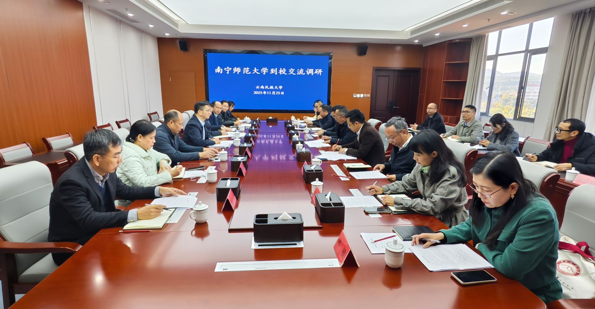 为深化校际合作,学习借鉴兄弟高校的先进办学理念和改革经验,进一步明晰beat365官网高质量发展路径,11月24日至25日,beat365官网校长隆广庆、副校长卢远带领发展规划与学科建设处、教务处、科研处、国内合作处、文学院、人工智能学院等部门及学院主要负责人组成调研组,先后赴云南师范大学和云南民族大学开展调研交流。