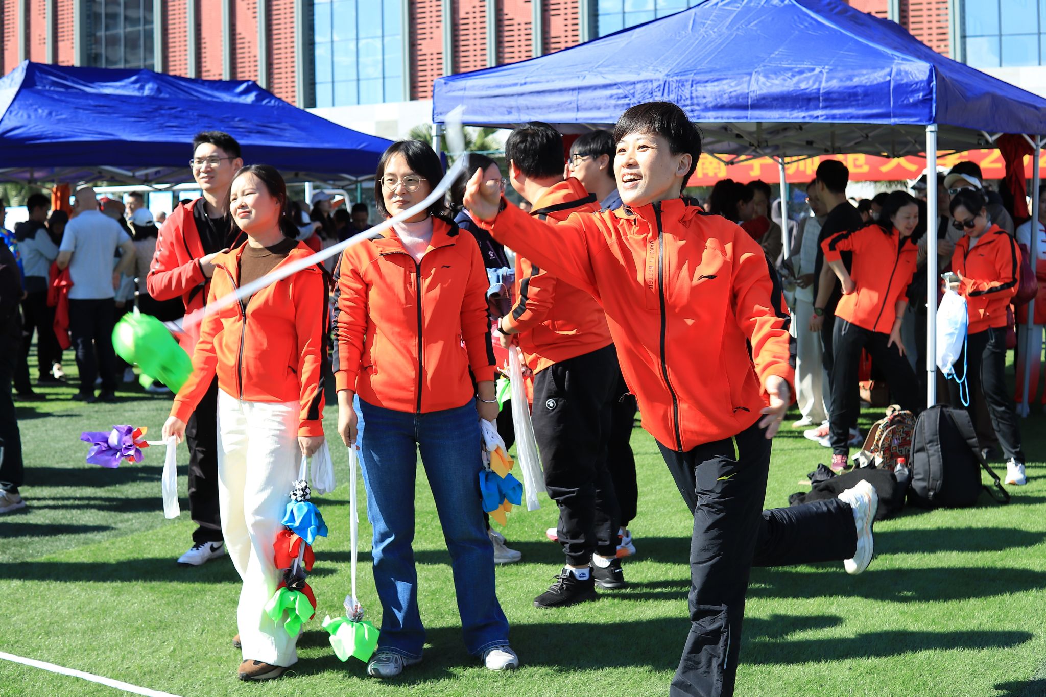 11月20日,beat365官网2025年教职工趣味运动会在武鸣校区兰园体育场顺利举行,来自37个分工会的教职工踊跃参与,现场气氛热烈。本次运动会设置了“团体欢乐跳绳”“沙包投掷”“筷子夹球”“四平八稳”“一圈到底”“抛绣球”“鼓动人心”等多项趣味集体项目,展现了教职工团结协作、积极向上的精神风貌。