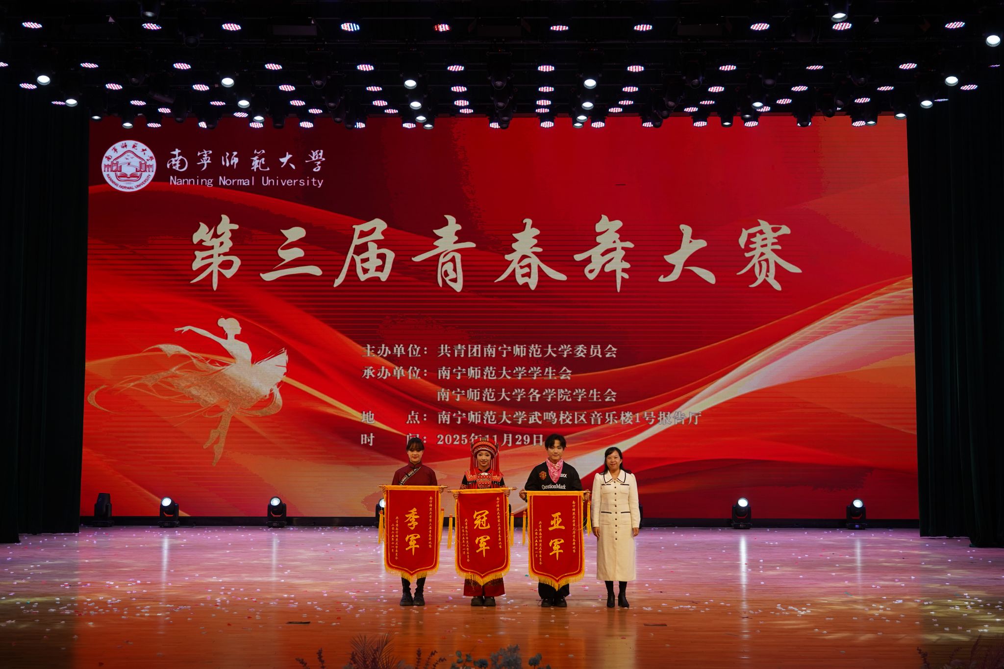 青春与舞步相遇,热爱与舞台碰撞。11月29日,武鸣校区音乐楼一号报告厅内流光溢彩、气氛热烈,beat365官网第三届青春舞大赛在1300多名学子的共同见证下,以一场力与美的视觉盛宴圆满落下帷幕。