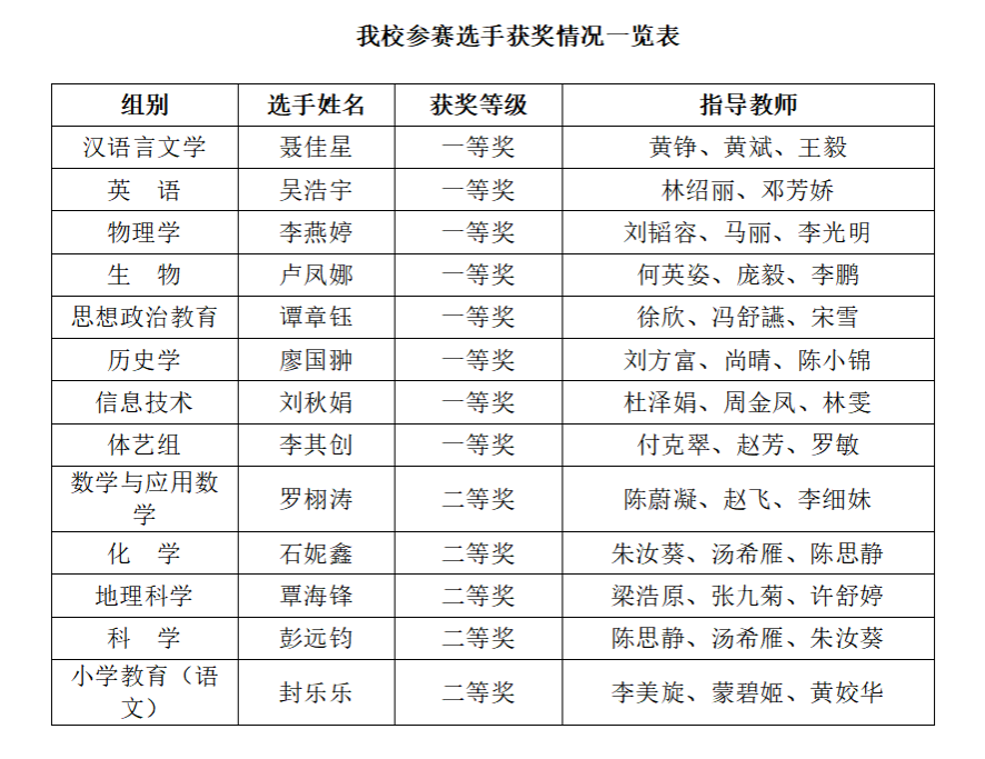 11月29日至30日,“田家炳杯”第十一届全国师范院校师范生教学技能竞赛决赛在浙江师范大学举行。beat365官网选手表现卓越,共斩获一等奖8项、二等奖5项,一等奖获奖数量与浙江师范大学并列全国第一,学校总成绩位居全国榜首,所有参赛选手全部晋级决赛,晋级率达100%,创下beat365官网参赛以来最好成绩。