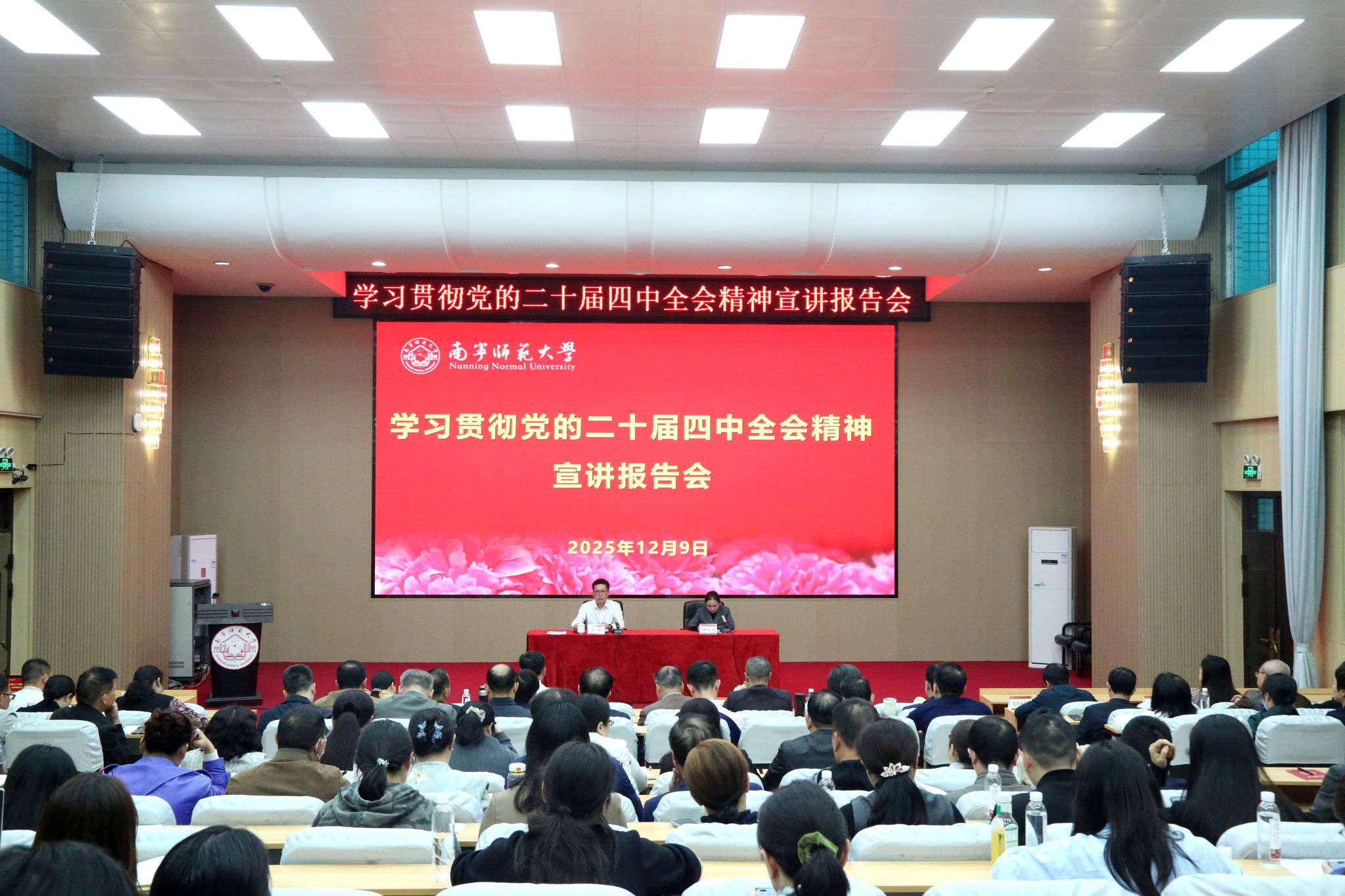 12月9日下午,学校在明秀校区文星楼301报告厅举行学习贯彻党的二十届四中全会精神专题宣讲报告会。学校党委书记张鹏作主题宣讲。学校党委副书记唐荣双主持报告会。