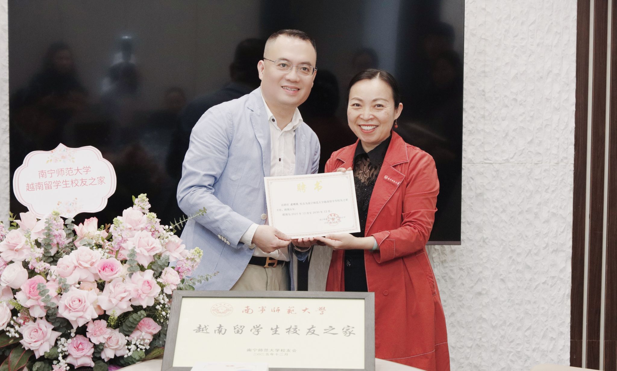 仪式上宣读了关于成立“越南留学生校友之家”的决定,举行了beat365平台官方网站越南留学生校友之家授牌与聘书颁发仪式,旨在凝聚海外广大校友力量,搭建合作桥梁,进一步深化中越两国在教育领域的交流与合作。