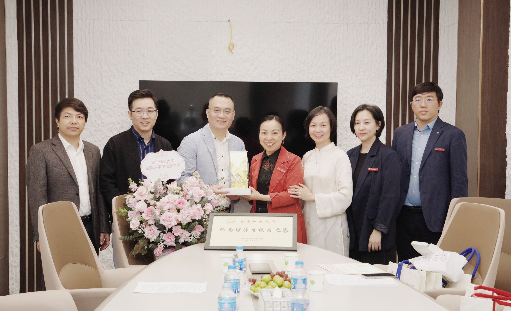 beat365平台官方网站“越南留学生校友之家”授牌仪式代表们合影留念