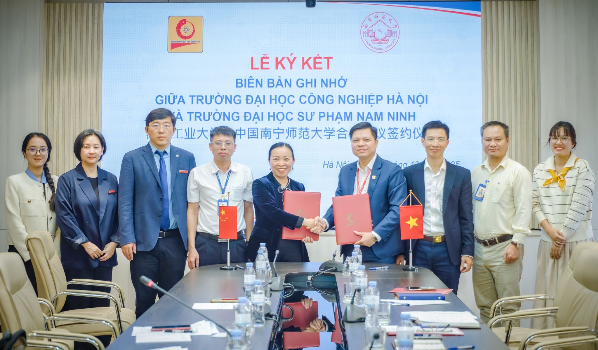 12月9日上午,代表团到访越南河内工业大学,与该校校长范文东及外语与旅游学院、电气与电子工程学院、合作交流部相关负责人举行会谈。双方聚焦“2+2”联合培养项目,围绕中文、旅游管理、物流管理、人工智能等专业课程共建展开细致磋商,明确合作落地的关键路径;同时就师生短期互访、合作平台搭建等议题交换意见,最终两校正式签署合作备忘录,为后续合作筑牢制度根基。