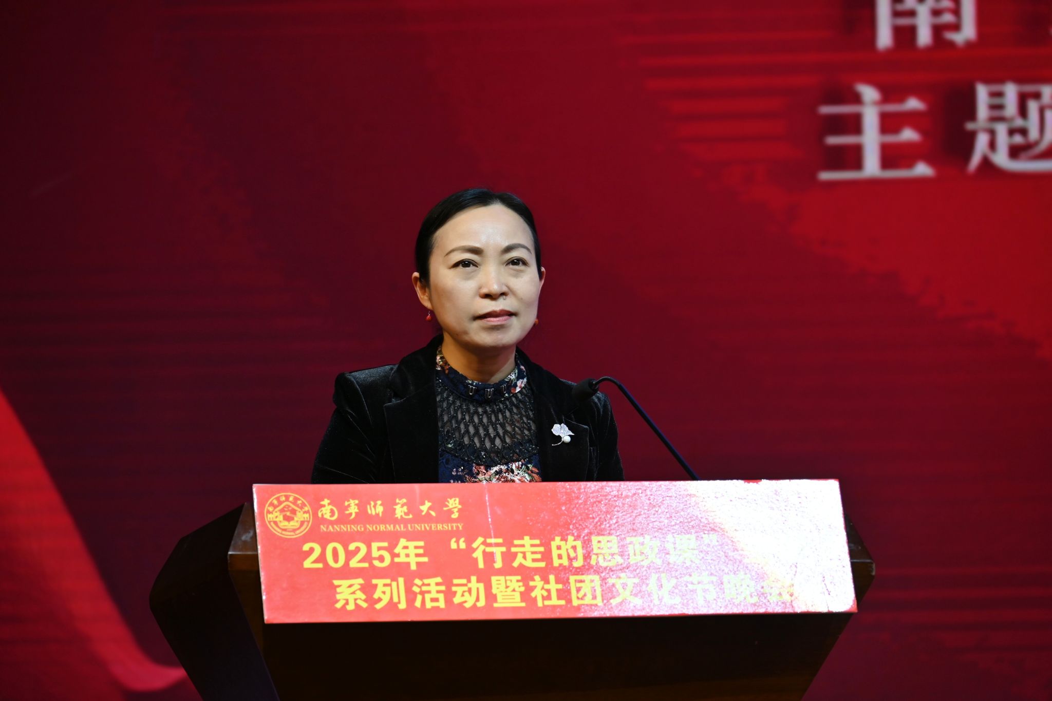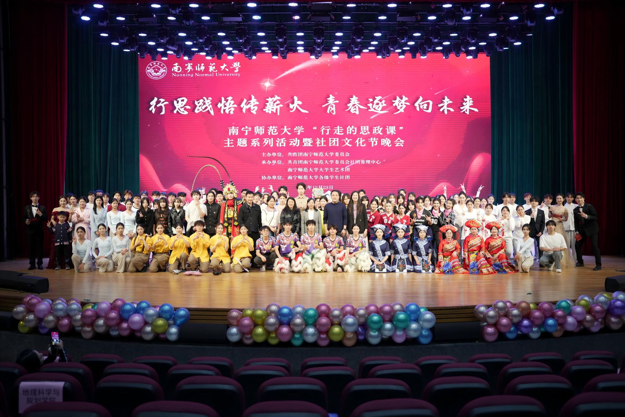 12月23日,beat365官网在武鸣校区1号报告厅举办2025年“行走的思政课”主题系列活动暨社团文化节晚会。学校副校长龙妮娜,党办校办、党委宣传部、党委学生工作部、校团委、党委研究生工作部等部门负责人,学院团委书记代表及1200余名团员青年共赴这场思政铸魂、青春飞扬的盛会。