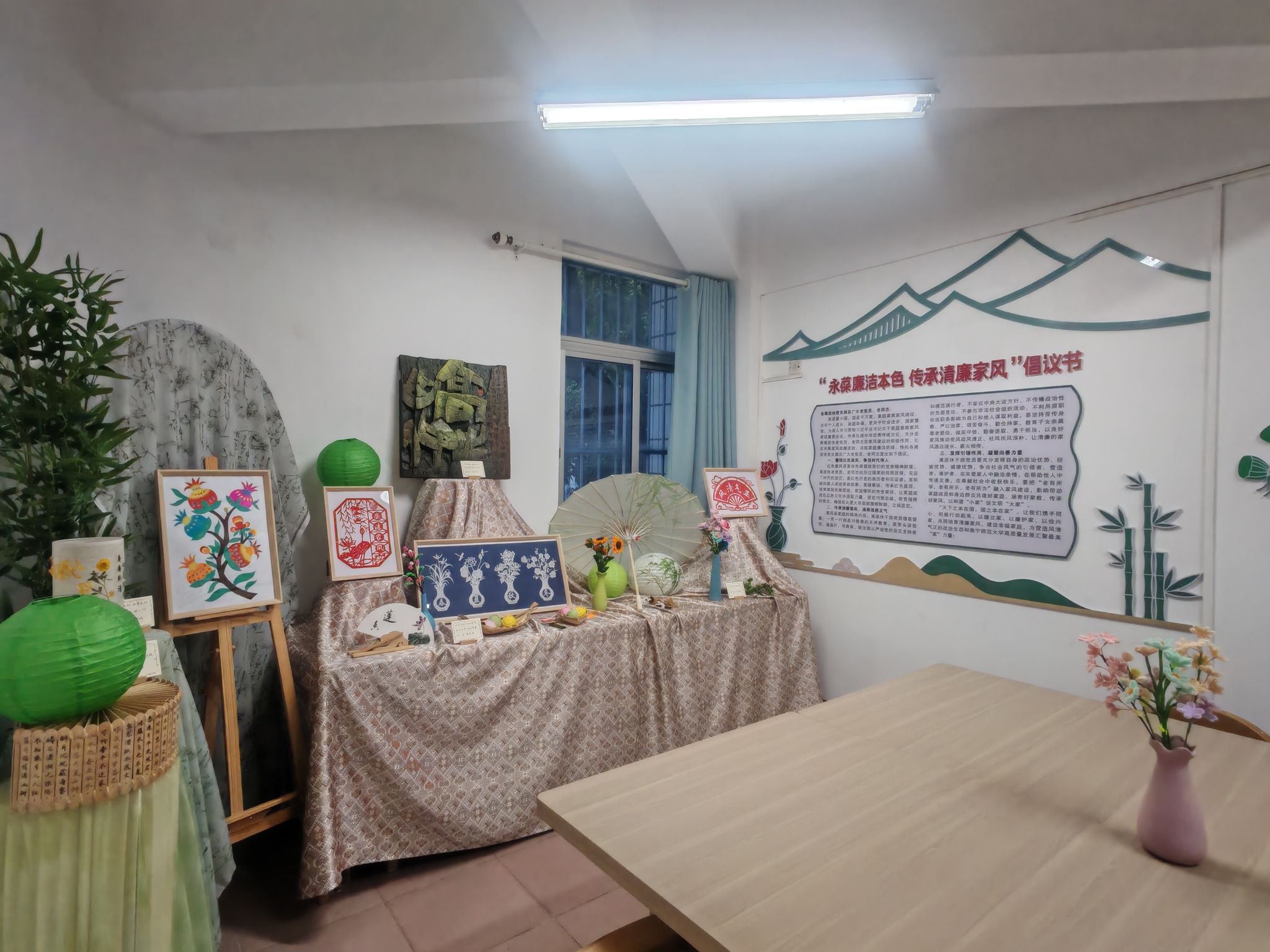 “清廉家风苑”以“传承红色基因、弘扬清廉家风”为主题,通过“一廊(清廉家风长廊)一课(廉洁家风课)一角(廉洁图书角)一坊(非遗手工坊)一厅(简约议事厅)”的多维教育空间布局,集教育展示、互动体验、文化传承于一体,成为校园廉洁文化的鲜活载体。