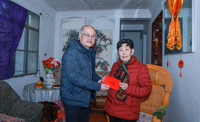 在老同志家中,学校领导与老同志们亲切交谈,细致入微地关心他们的健康状况及日常生活,向他们通报了学校近期的发展动态,认真倾听了老同志们的宝贵意见和建议,并对他们长期以来关心和支持学校各项事业的发展,表达了崇高的敬意与由衷的感谢。学校领导向他们致以最诚挚的新春祝福,祝愿他们身体康健,福寿安康,生活幸福美满。