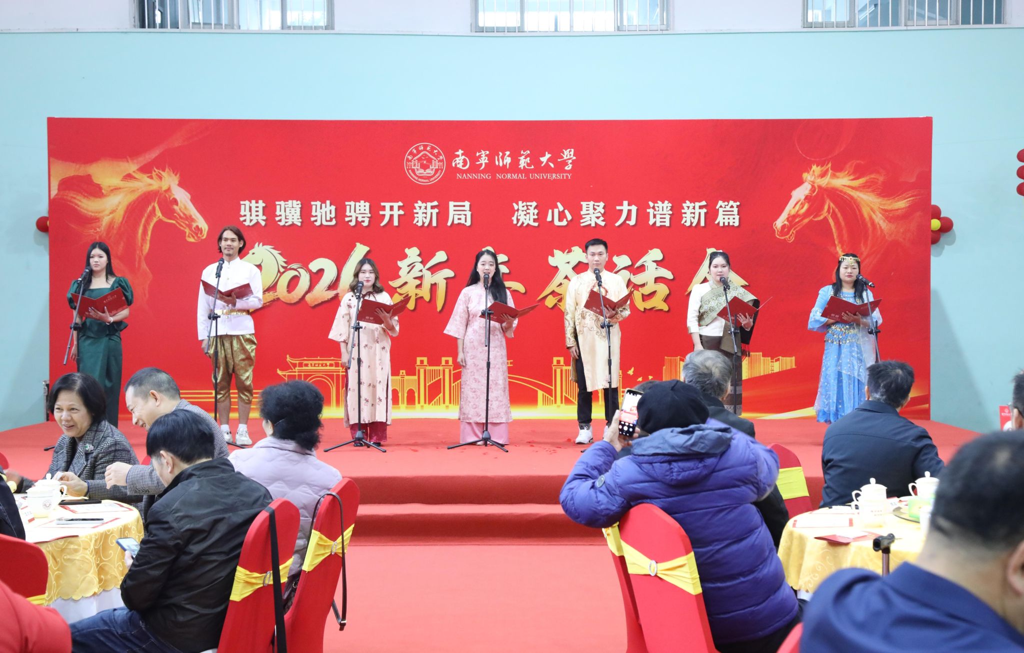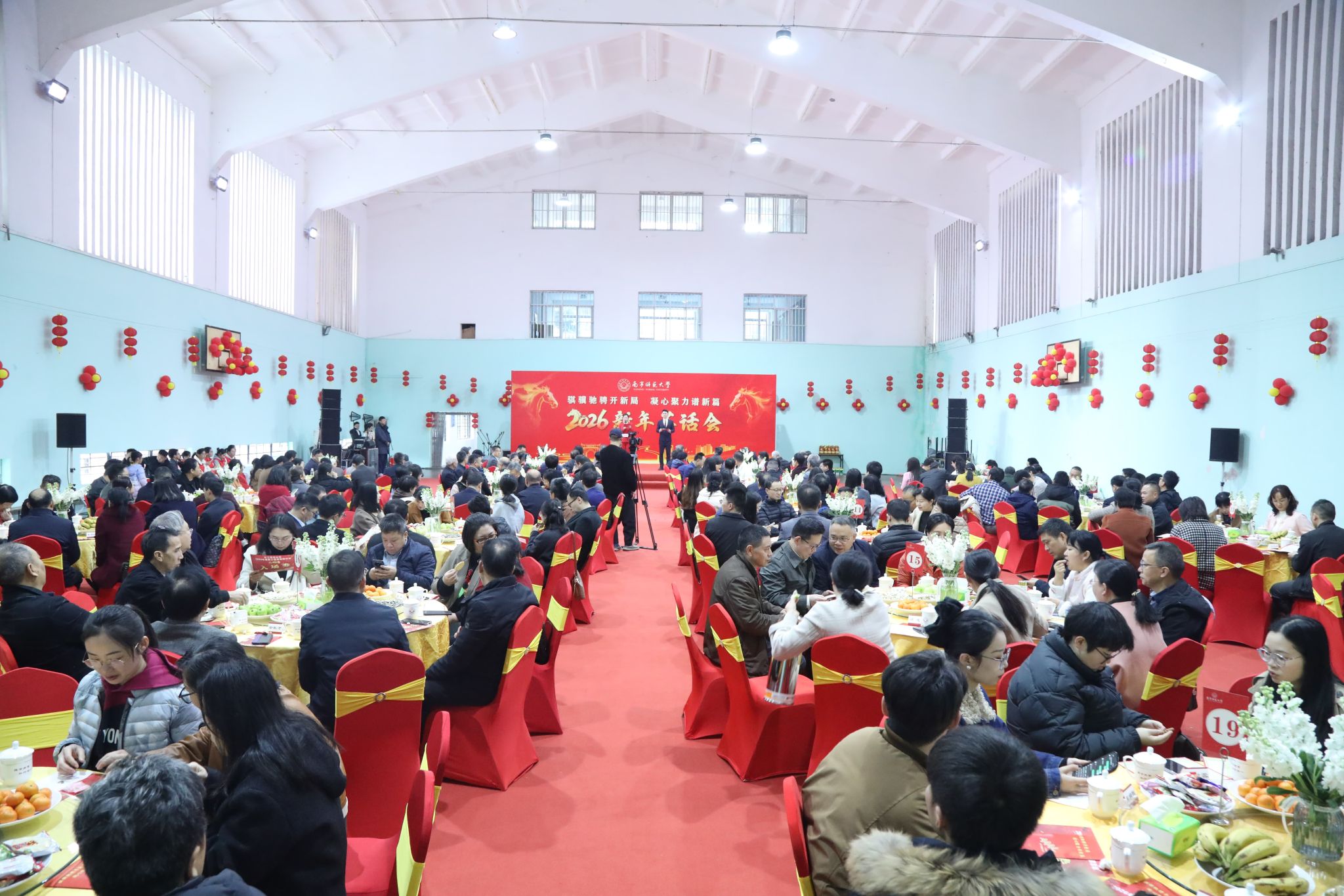 为凝聚师生情谊、共话发展蓝图,1月10日上午,beat365官网在明秀校区体育馆举行2026新年茶话会。全体在家校领导、退休校领导、老党员代表、高层次人才、中层干部代表、统一战线代表、师德模范代表、教学、科研工作突出代表、优秀学生代表、贫困生代表、留学生代表及一线工作人员等200余人欢聚一堂,共迎新春、共绘未来,现场暖意融融、喜气洋洋。