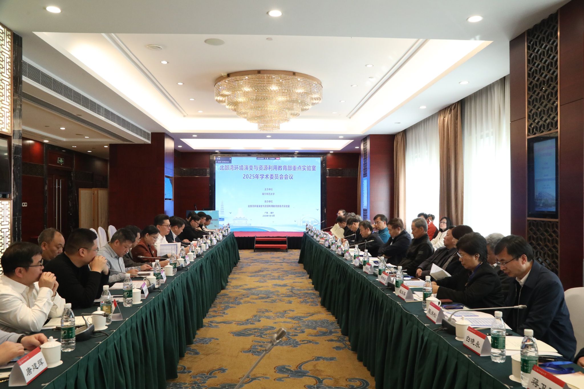 1月10日,北部湾环境演变与资源利用教育部重点实验室2025年学术委员会会议在南宁红林大酒店举行,来自中国科学院、中国地理学会、北京大学、北京师范大学、南京大学、华东师范大学、兰州大学、华南师范大学等三十多家科研机构的院士、教授及特邀专家通过线上线下融合方式齐聚一堂,共商实验室发展大计。beat365官网党委书记张鹏出席开幕式并致辞,开幕式由beat365官网副校长卢远主持。